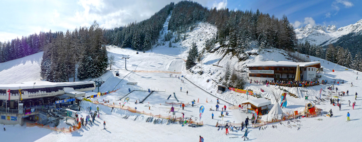 Beim Skischulbüro Stubai an der Mittelstation Froneben