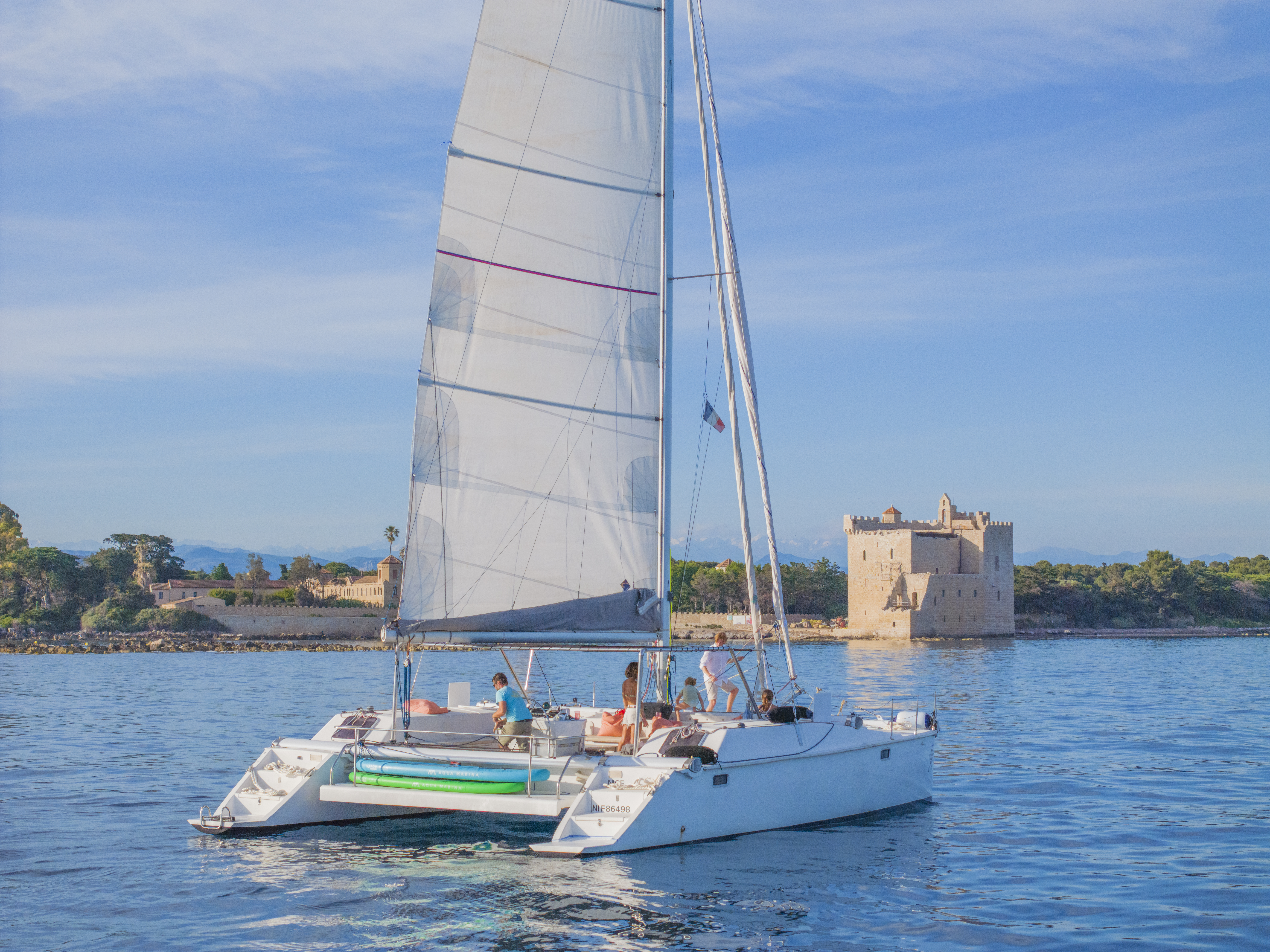 Nutzen Sie die Gelegenheit, einen unserer Katamarane für einen Ausflug in die Bucht von Cannes mit Schwimmen & Schnorcheln zu privatisieren! Dieser geräumige Katamaran bietet bequem Platz für bis zu 20 Personen und bietet ausreichend Platz für Entspannung und Spaß. Während wir durch die atemberaubende Bucht von Cannes fahren, werden Sie von der malerischen Landschaft und der sanften Meeresbrise verzaubert, was es zum perfekten Ort für einen Tag voller Abenteuer und Freizeit macht.