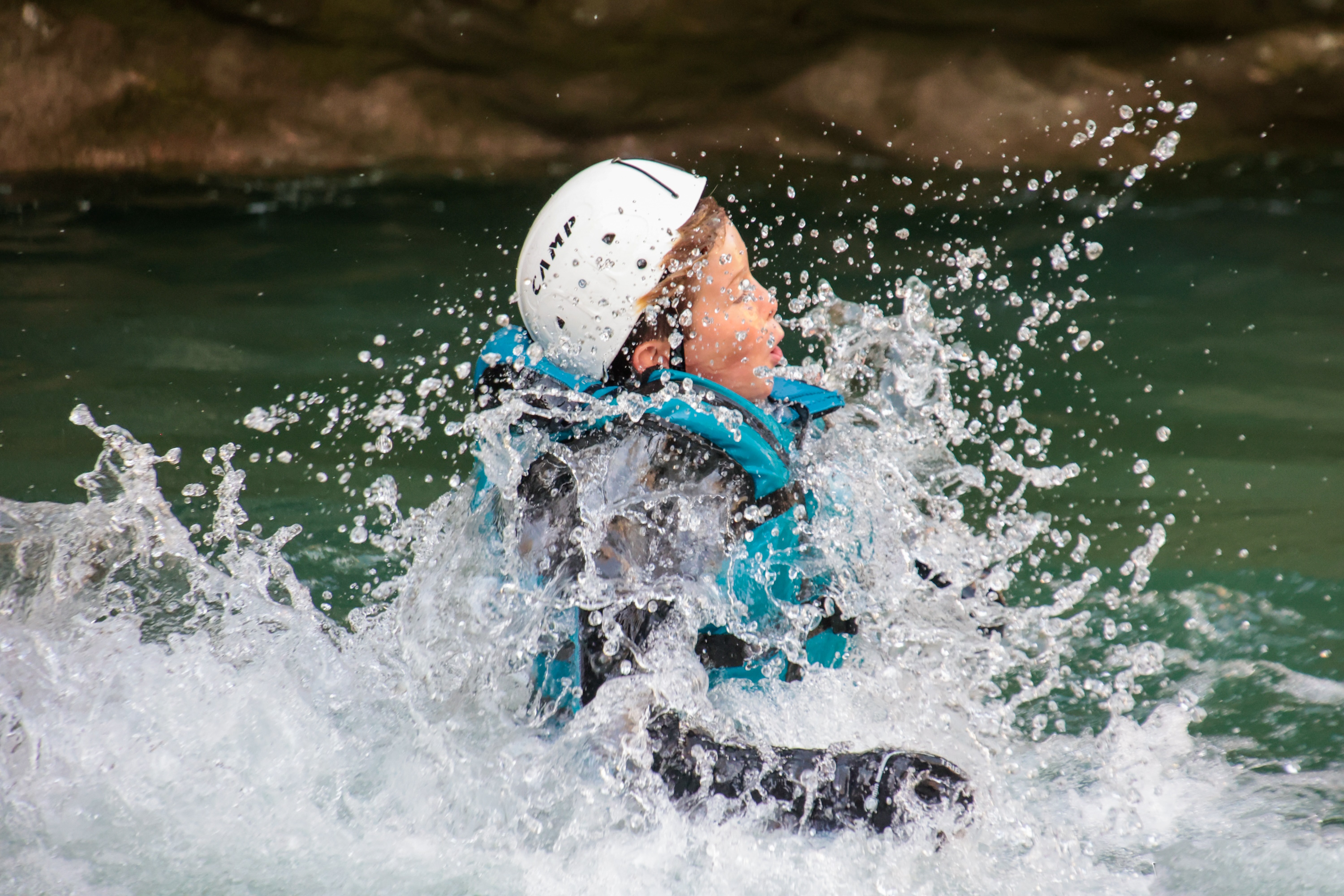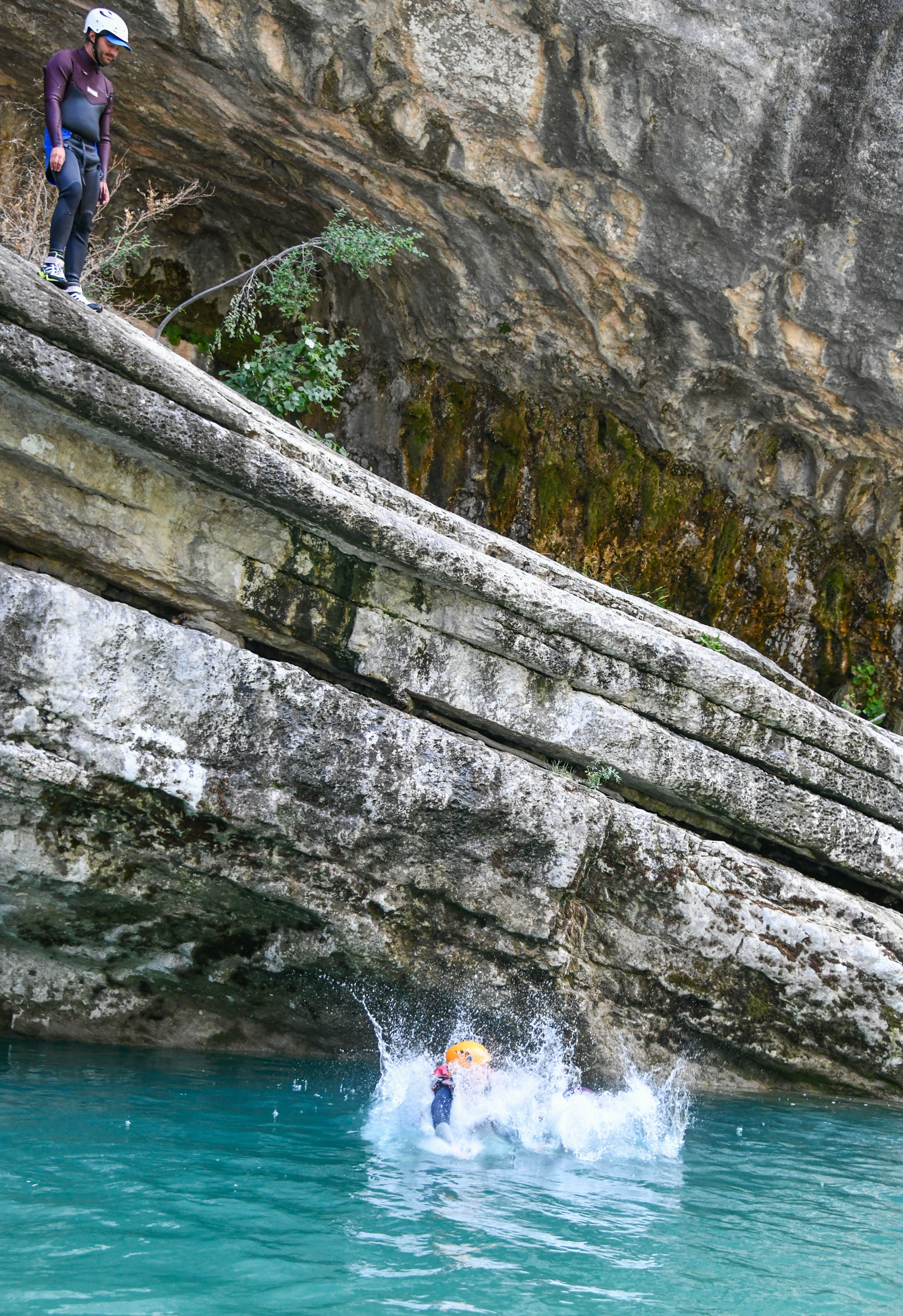 Der Spaß kann beginnen! Flusstrekking ist das kleine Geschwisterchen des Canyoning und beinhaltet kein Abseilen. Man kann von Felsen springen und den Fluss entlang schwimmen. Keiner der Sprünge ist obligatorisch und es ist Euch überlassen, wo Ihr springen wollt! Egal ob Ihr eine abenteuerliche Tour aus seid oder Euch einfach von der Strömung treiben lassen wollt, die Landschaft auf diesem wilden Abschnitt der Verdonschlucht wird Euch den Atem rauben.