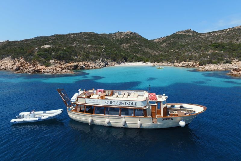 Anschließend setzen wir die Fahrt fort und fahren am berühmten rosafarbenen Strand von Budelli vorbei, der seit Jahren aus Schutzgründen geschlossen ist, und weiter nach Porto della Madonna. Dieses zwischen drei Inseln eingeschlossene Gebiet ist berühmt für die Blautöne und die Klarheit des Wassers, die Ihr bei unserem Halt genießen könnt. Schließlich besuchen wir Santa Maria, die Korsika am nächsten gelegene Insel des Archipels, die auch die letzte Insel auf unserer Route ist. Je nach Wind und Strömung werden wir entweder am Strand anhalten oder eine kurze Pause einlegen, um vom Boot aus zu tauchen, und dann werden wir Euch zurück zum Hafen bringen, von wo aus Ihr am Morgen abgereist seid.