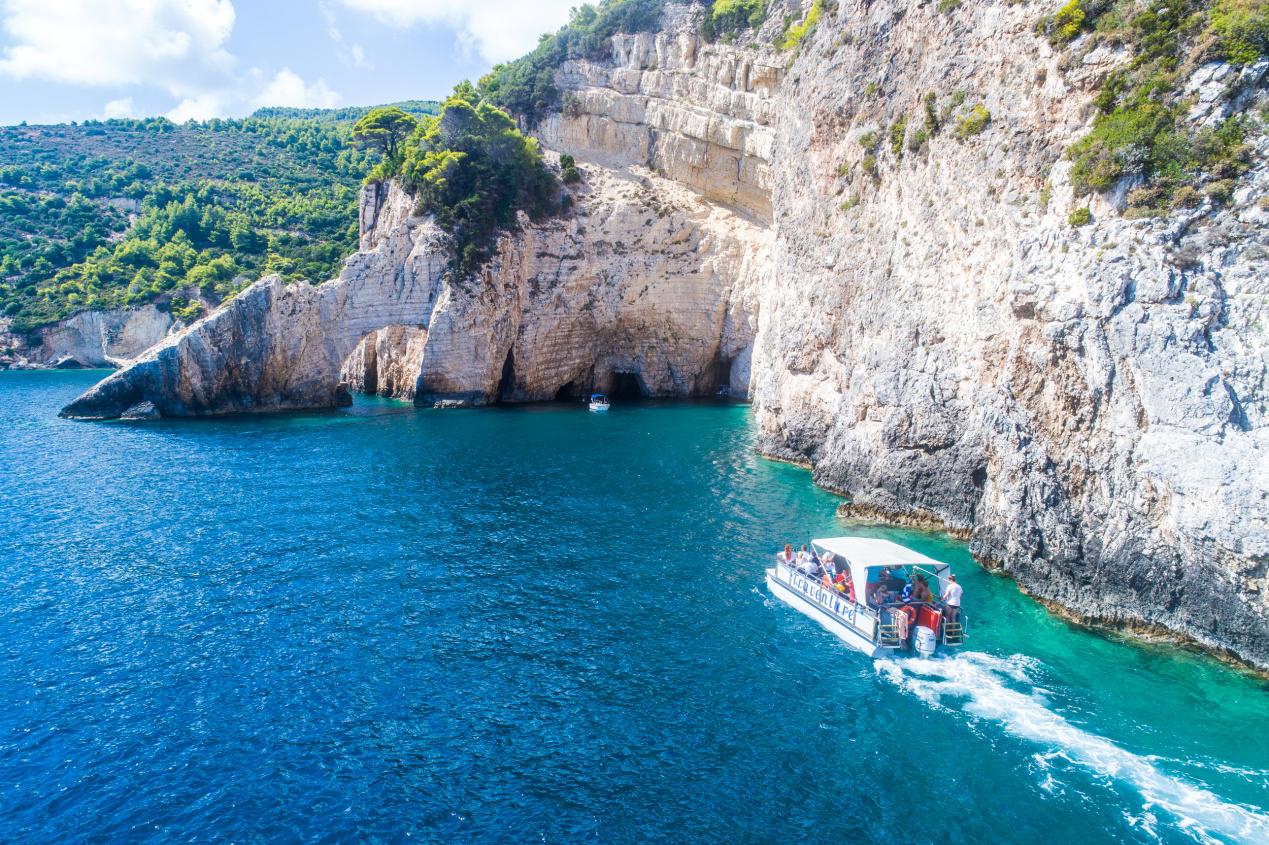 Das nächste Highlight unserer Tour sind die Keri Höhlen. Hierbei handelt es sich um besondere Felsformationen, die wunderschöne Höhlen und Bögen bilden. Unser Boot hat die perfekte Größe, um durch einen der Bögen durchzufahren. Danach fahren wir entlang der Buchten und Höhlen, damit Ihr noch schöne Fotos als Erinnerung machen könnt. Haltet Eure Schnorchelausrüstung bereit, denn als Nächstes fahren wir zu einem weiteren Höhepunkt: dem Marathias Strand, der für sein Thermalwasser bekannt ist! Der Blick auf den Meerestunnel mit seinem tiefblauen Wasser und dem weißen Strand raubt Euch den Atem. Hier können wir einen Schwimmstopp einlegen und gemeinsam im wunderschönen Wasser schwimmen gehen.