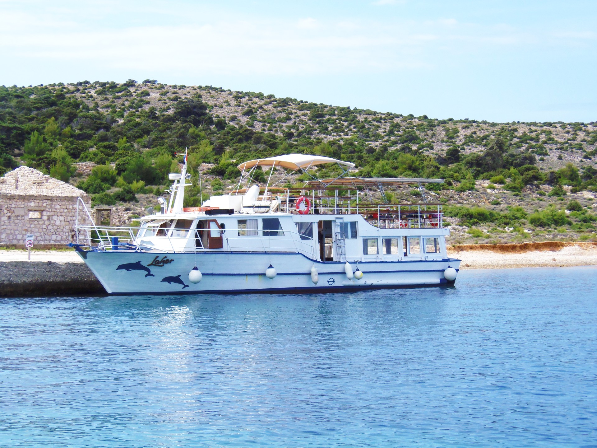 Wir verlassen den Hafen von Punat und erreichen nach 45 Minuten Fahrt die kleine Insel Mali Plavnik, wo wir ankern und Ihr Euch eine lange Pause gönnen könnt, um im kristallklaren Wasser zu schwimmen. Wir fahren weiter nach Plavnik, einer Insel, die für die Anwesenheit von Gänsegeiern bekannt ist, die wir direkt vom Schiff aus sehen können. Danach geht es weiter zu einer kleinen Grotte in der Nähe, wo Ihr eine halbe Stunde lang schwimmen und schnorcheln könnt.