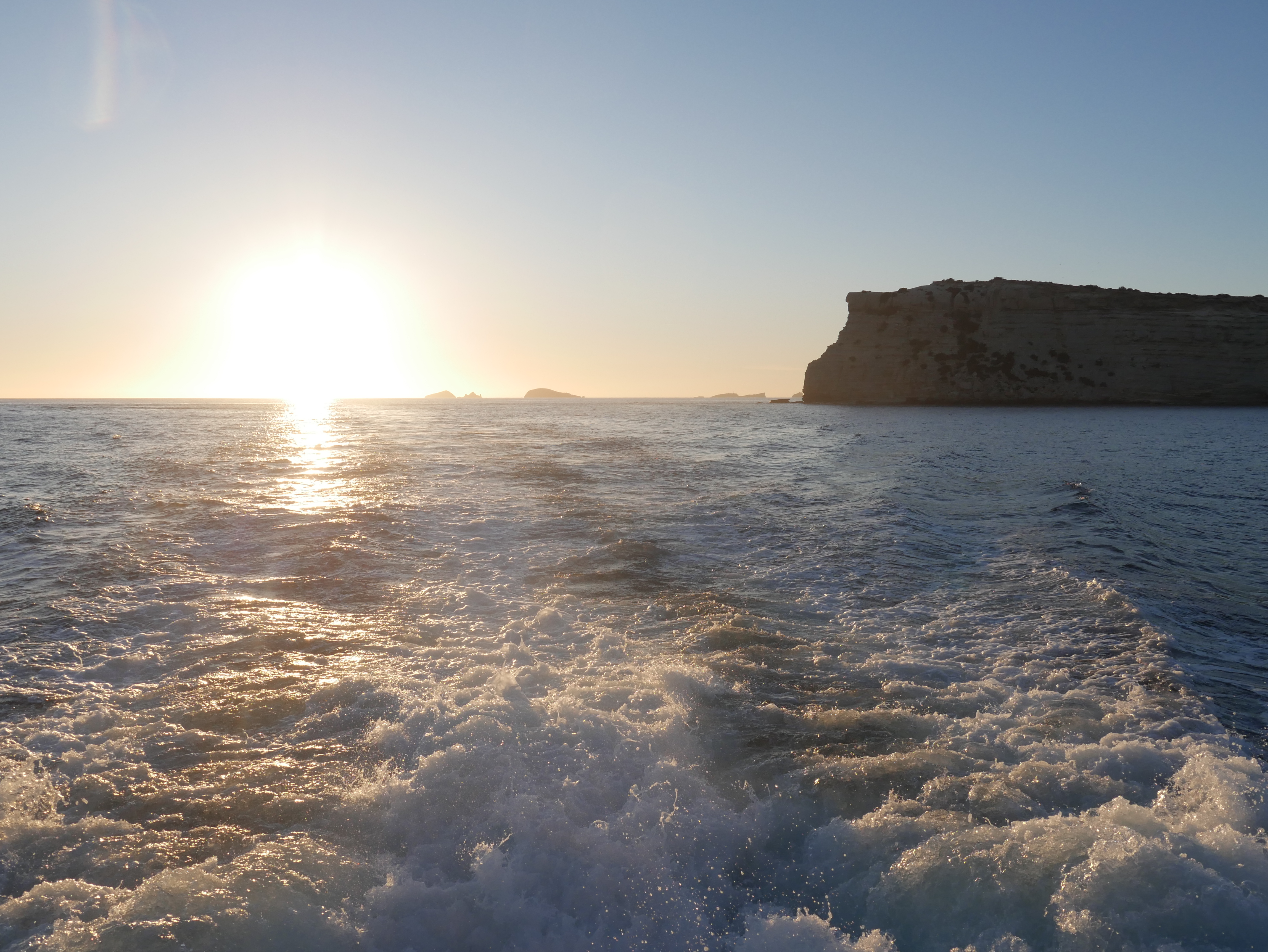 Wir treffen uns 30 Minuten vor der Abfahrt am Hafen von Sant Antoni de Portmany. Wenn Ihr mit dem Auto anreist, findet Ihr gebührenpflichtige Parkplätze in der Nähe.