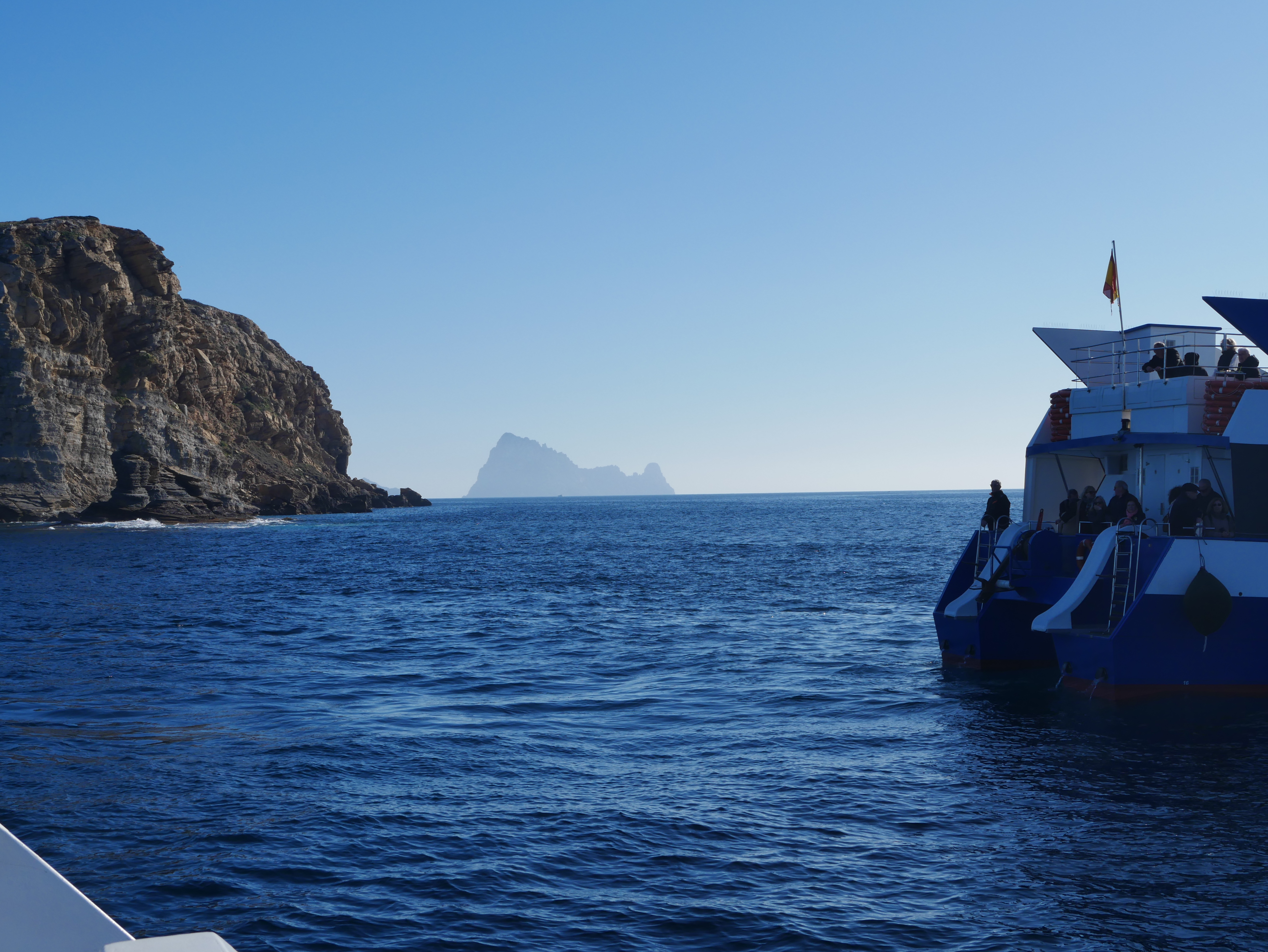 Unser Boot, der Katamaran Capitán Nemo, bietet Platz für bis zu 150 Passagiere und ist mit allen Annehmlichkeiten ausgestattet, die Ihr für eine entspannte Tour benötigt. Wenn wir uns Es Vedrà und Vedrandell nähern, erfahrt Ihr mehr über deren faszinierende Geschichte und die Legenden um diese mystischen Inseln. Wir umrunden die Inseln und passieren Atlantis, einen alten Steinbruch, der für seine einzigartigen Felsformationen bekannt ist.