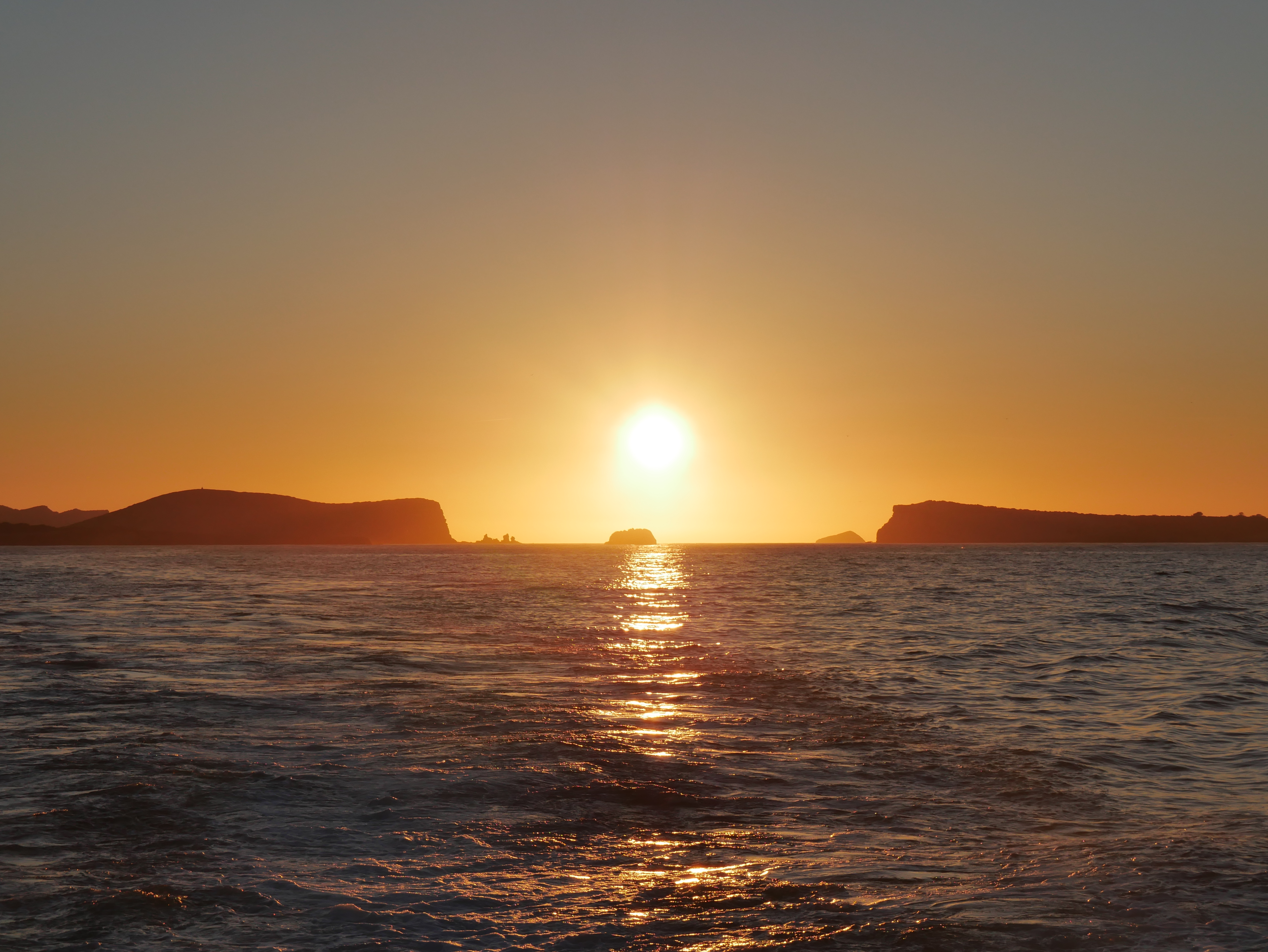 Sonnenuntergang über dem Mittelmeer mit atemberaubendem Blick auf Ibiza