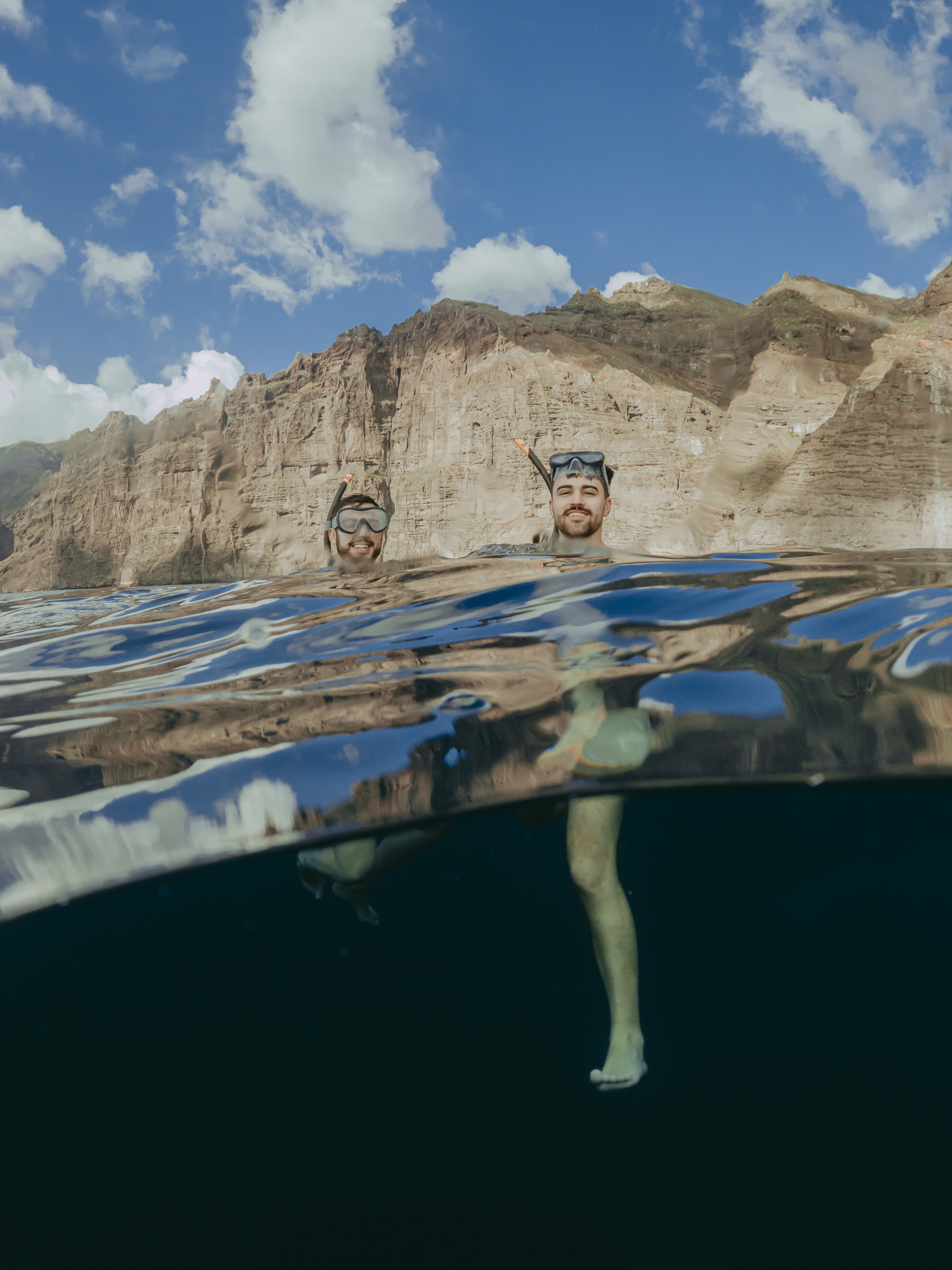 Unsere Reise beginnt im Hafen von Los Gigantes und führt uns in Richtung Punta de Teno. Während wir an den bemerkenswerten Los Gigantes Klippen vorbeikommen, haltet Ausschau nach der unglaublichen Meeresfauna, die dieses Naturschutzgebiet bewohnt. Es ist sehr wahrscheinlich, dass wir einige Wale und Delfine sehen, was der Tour eine magische Note verleiht. Nach einer Weile machen wir uns auf den Weg zur Masca Bucht, wo Ihr in den kristallklaren Gewässern schnorcheln und schwimmen könnt und die reiche Biodiversität unter Wasser bestaunen könnt. Nach einem erfrischenden Bad wird an Bord ein köstliches Mittagessen serviert, wobei auch vegane und vegetarische Optionen verfügbar sind.