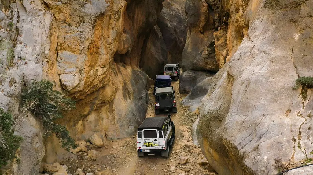 Unser Abenteuer geht weiter, indem wir an antiken Monumenten vorbeifahren, die von der präminoischen, minoischen und römischen Epoche zeugen, bevor wir in die Schlucht hinabsteigen. Wir durchqueren einen atemberaubenden Pfad durch Wälder, die reich an wilden Olivenbäumen und heimischer Tierwelt sind, und eine vielfältige Flora und Fauna, einschließlich zahlreicher Wildkräuter, beherbergen. Erlebt aufregendes Off-Roading durch die aufragenden senkrechten Felsen der Trypiti Schlucht.