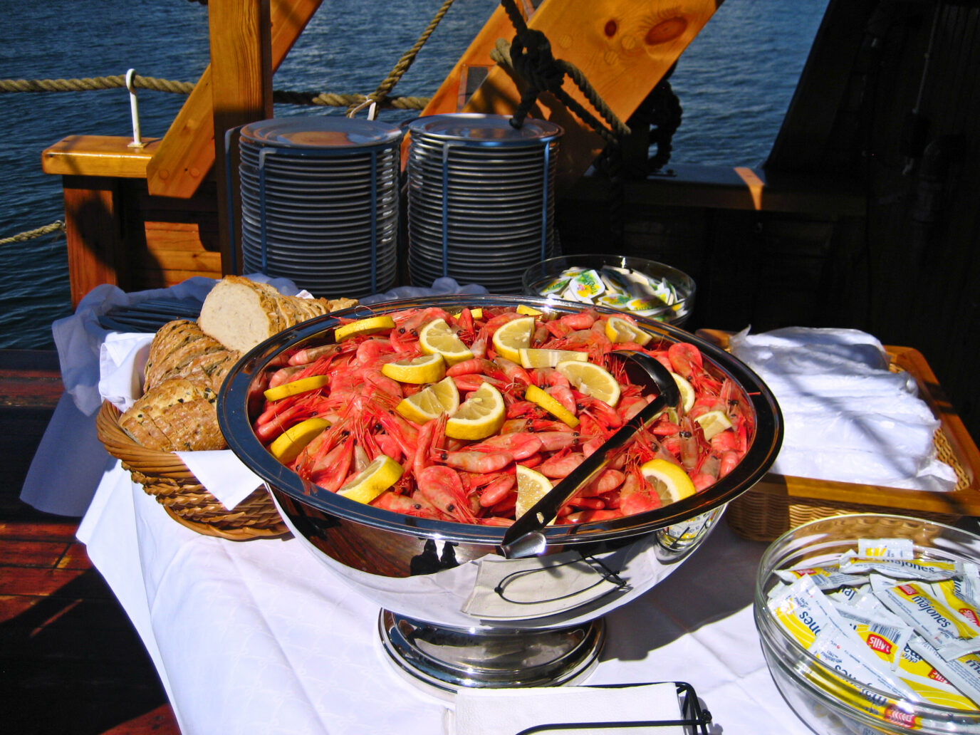 Abendessen (Garnelen-Buffet (im "Fjord-Stil", mit Brot, Butter, Zitrone und Mayonnaise))
