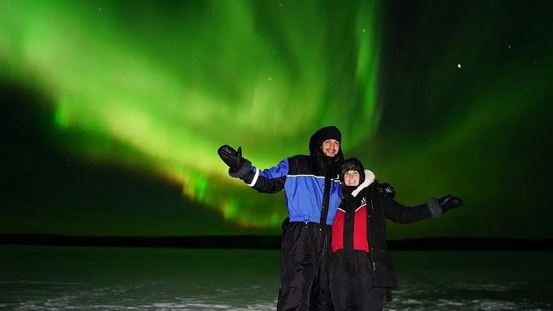 Tretet ein in ein Winterwunderland bei unserer Aurora-Schneeschuhwanderung, bei der Ihr durch ruhige Wälder wandert und die Nordlichter in ihrer ganzen Pracht erlebt! Beginnt Euer Abenteuer, während unser Nordlicht-Spezialist Euch zu einem geheimen Ort führt, fernab vom Trubel der Stadtlichter, um die beeindruckenden tanzenden Lichter zu suchen. Mit Fachkenntnis überprüft unser professioneller Guide die Aurora-Wahrscheinlichkeiten und wählt die besten Orte für die abendliche Beobachtung aus. Während Ihr die schneebedeckten Pfade erkundet, werdet Ihr von der friedlichen Umgebung und den Geschichten über die mystischen Auroren, die unser Guide erzählt, verzaubert. Die Tour, geeignet für alle Levels, bietet eine einzigartige Perspektive auf das grandiose Naturschauspiel.