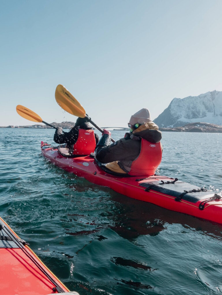 Erlebt die atemberaubende Schönheit der Lofoten im Winter bei unserer Kajaktour durch den Reinefjord. Von unserem privaten Hafen aus beginnen wir mit einer kurzen Einführung, um Euch auf dieses einzigartige arktische Abenteuer vorzubereiten. Vorkenntnisse sind nicht erforderlich, da unsere erfahrenen Guides für eine sichere, reibungslose und angenehme Reise durch den verschneiten, ruhigen Fjord sorgen.