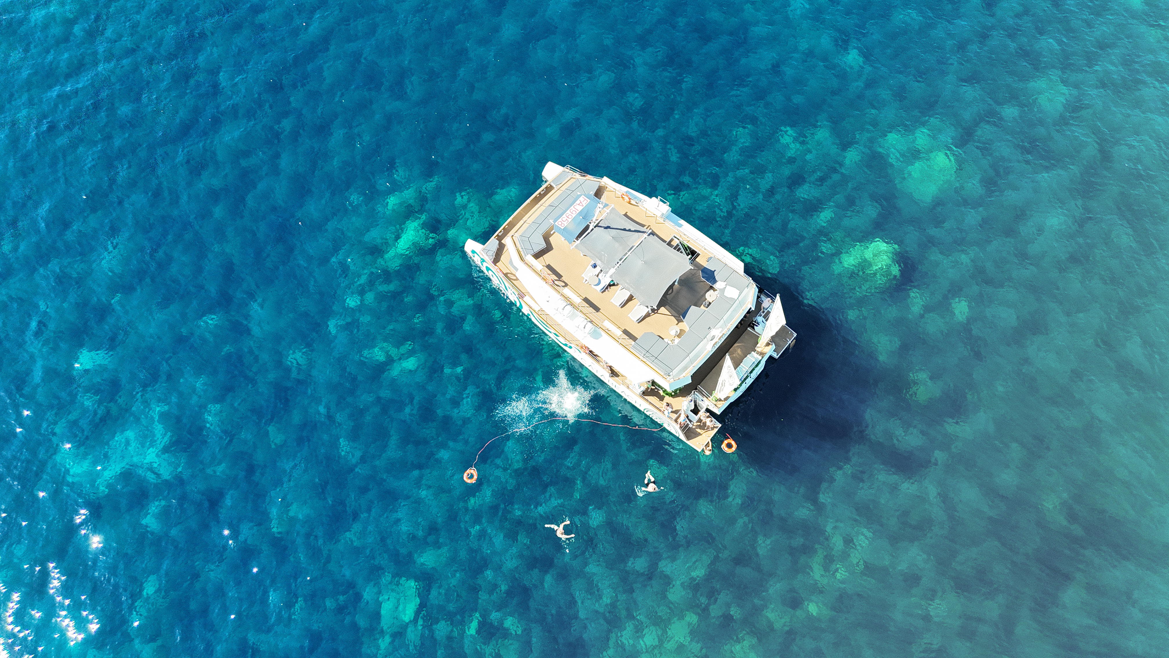 An Bord unseres Maxi-Katamarans führt Sie die Fahrt zu wunderschönen, wilden Buchten, die nur über das Meer zugänglich sind. Mehrere Ankerstopps sind in besonders klarem Wasser geplant, ideal, um das Meer und die natürliche Umgebung in vollen Zügen zu genießen.