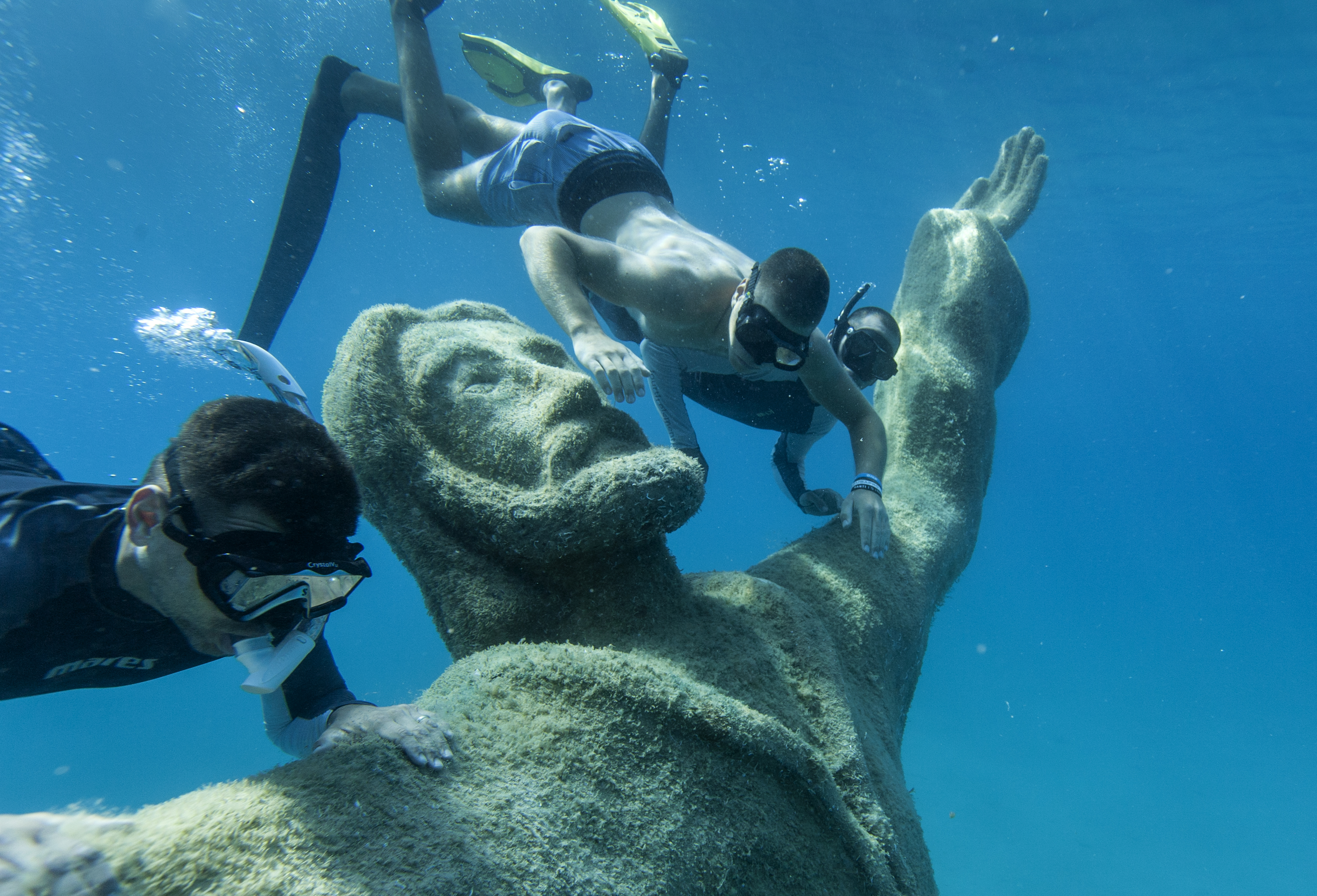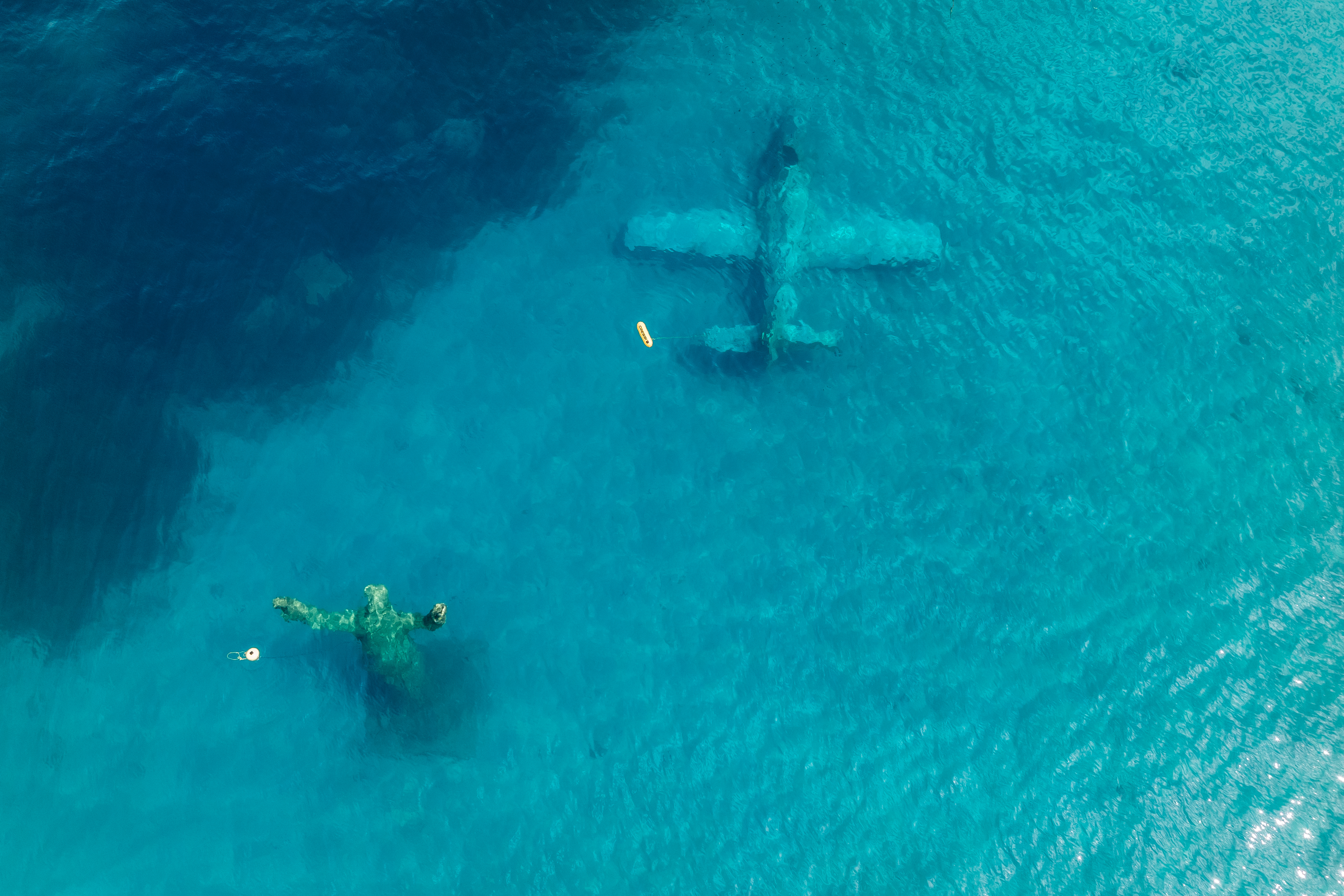 Geheimes Unterwassermuseum (abgelegene Bucht, Unterwasserstatuen und ein versunkenes Flugzeug)