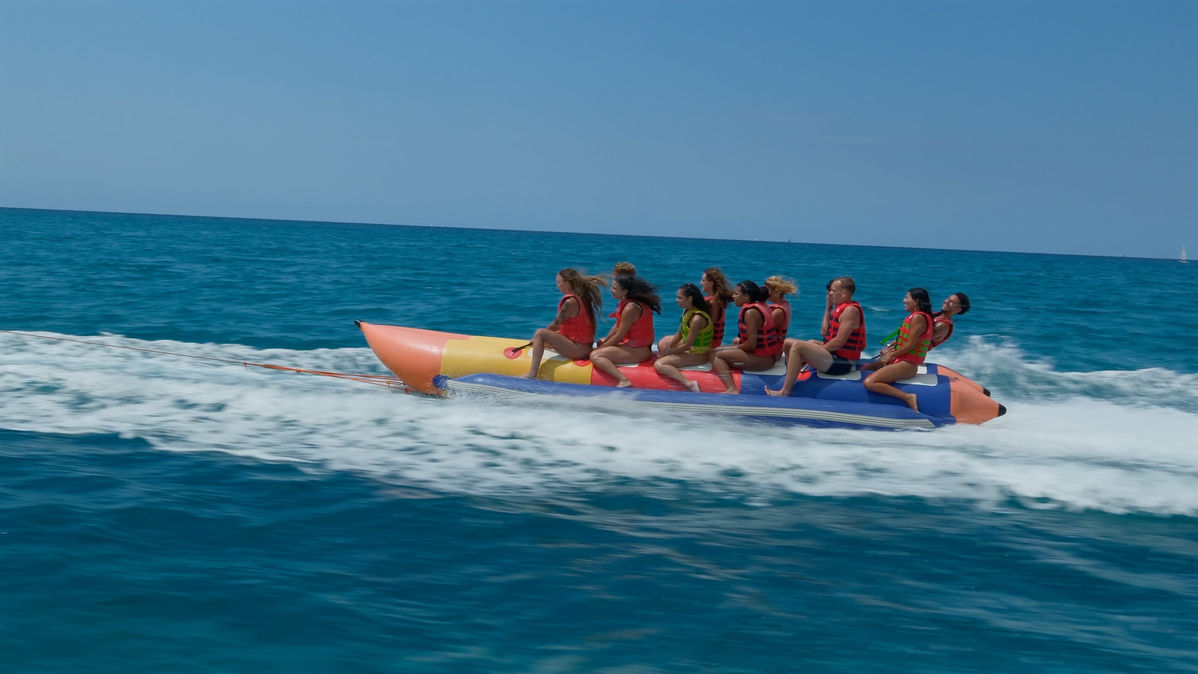 Bringt etwas Spaß in Euren Aufenthalt auf Mallorca und genießt eine Bananenbootfahrt am Strand von El Arenal! Diese aufregende Aktivität ist perfekt für einen Tag mit Freunden oder der Familie und bietet eine spannende Herausforderung, um zu sehen, wer sich am längsten festhalten kann. Mit Platz für 4-12 Personen könnt Ihr Eure Gruppe zusammenbringen und unvergessliche Erinnerungen schaffen. Direkt neben dem Strand gelegen, ist das Bananenboot leicht zu besteigen und sorgt für eine sichere Fahrt für alle Beteiligten. Bevor das Abenteuer beginnt, zieht Ihr Eure Schwimmwesten an und macht Euch bereit, um auf den Wellen zu lachen und zu lächeln. Diese Aktivität ist ideal für Erstteilnehmer und diejenigen, die etwas Neues erleben möchten. Ihr lernt, das Gleichgewicht zu halten und Euch gut festzuhalten, was es zu einer perfekten Einführung in den Wassersport macht. Es sind keine Vorkenntnisse erforderlich, nur ein Wunsch nach Spaß und die Bereitschaft, die Meeresbrise und die Spritzer zu genießen!