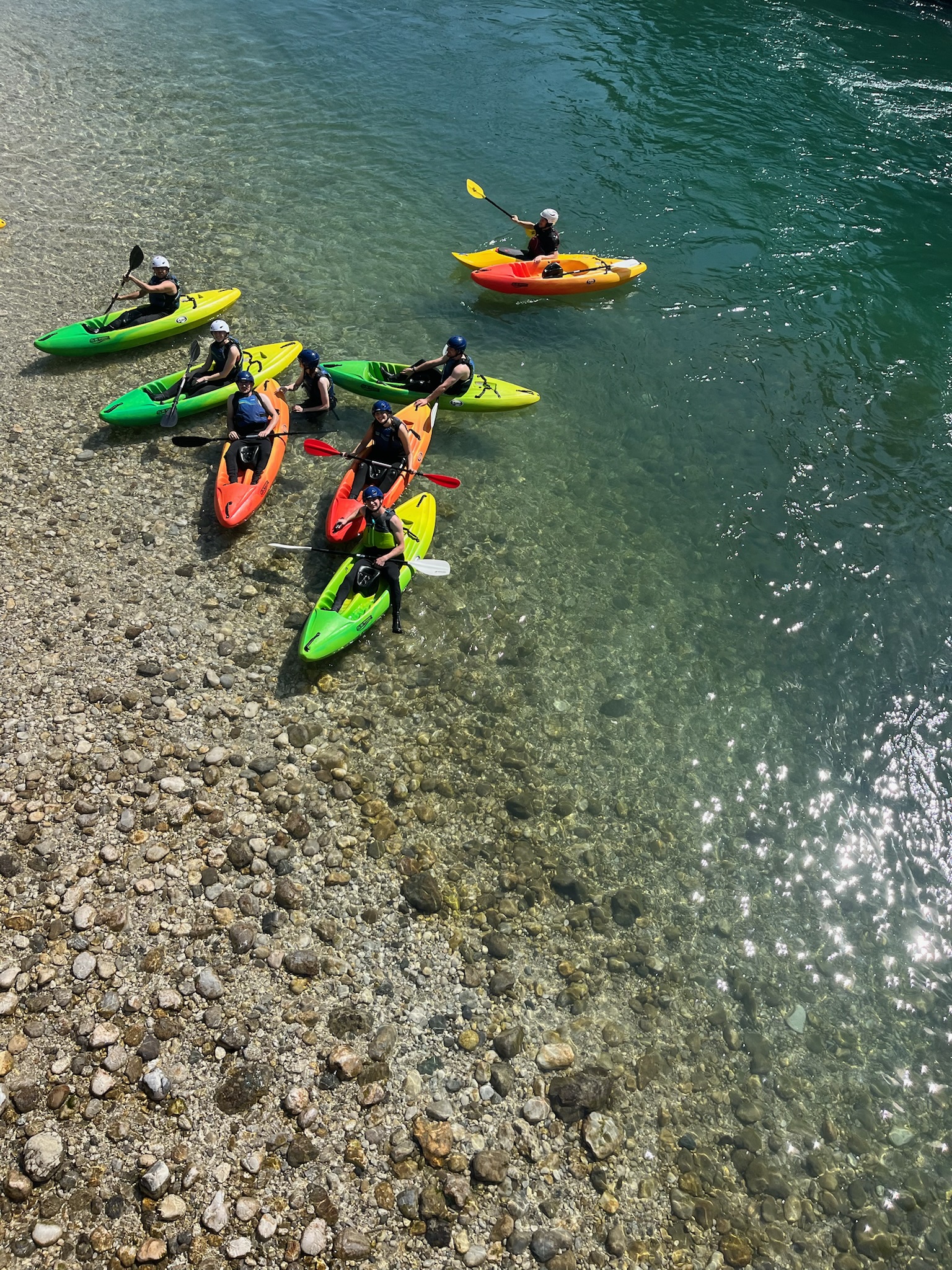 Das Abenteuer beginnt am Zusammenfluss der Flüsse Sava Bohinjka und Sava Dolinka. Hier bringen Euch unsere Guides alles über Sicherheit auf dem Fluss, richtige Paddeltechniken und den Verlauf der Tour bei. Sobald wir mit dem Paddeln beginnen, werdet Ihr durch ruhige Bereiche navigieren, um die grundlegenden Schläge und Positionen zu erlernen. Unterwegs halten wir mehrmals in wunderschönen Pools an, in denen Ihr schwimmen oder ins Wasser springen können, was Eurer Abenteuerreise eine erfrischende Note verleiht.