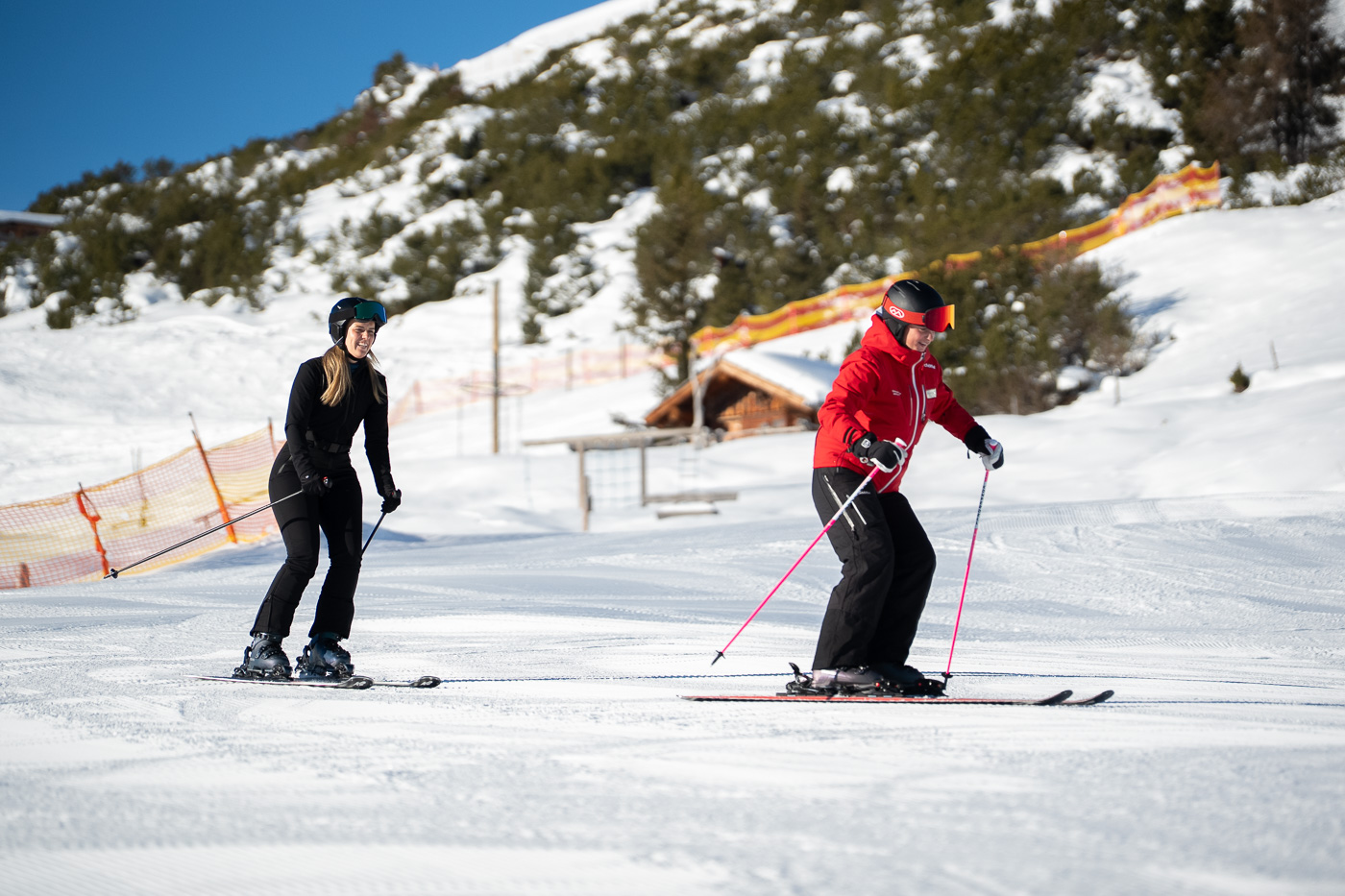 Bitte vergewissert Euch, dass Ihr zu Beginn des Kurses Skier, Skischuhe, Helm, Handschuhe und Sonnen- oder Skibrille habt