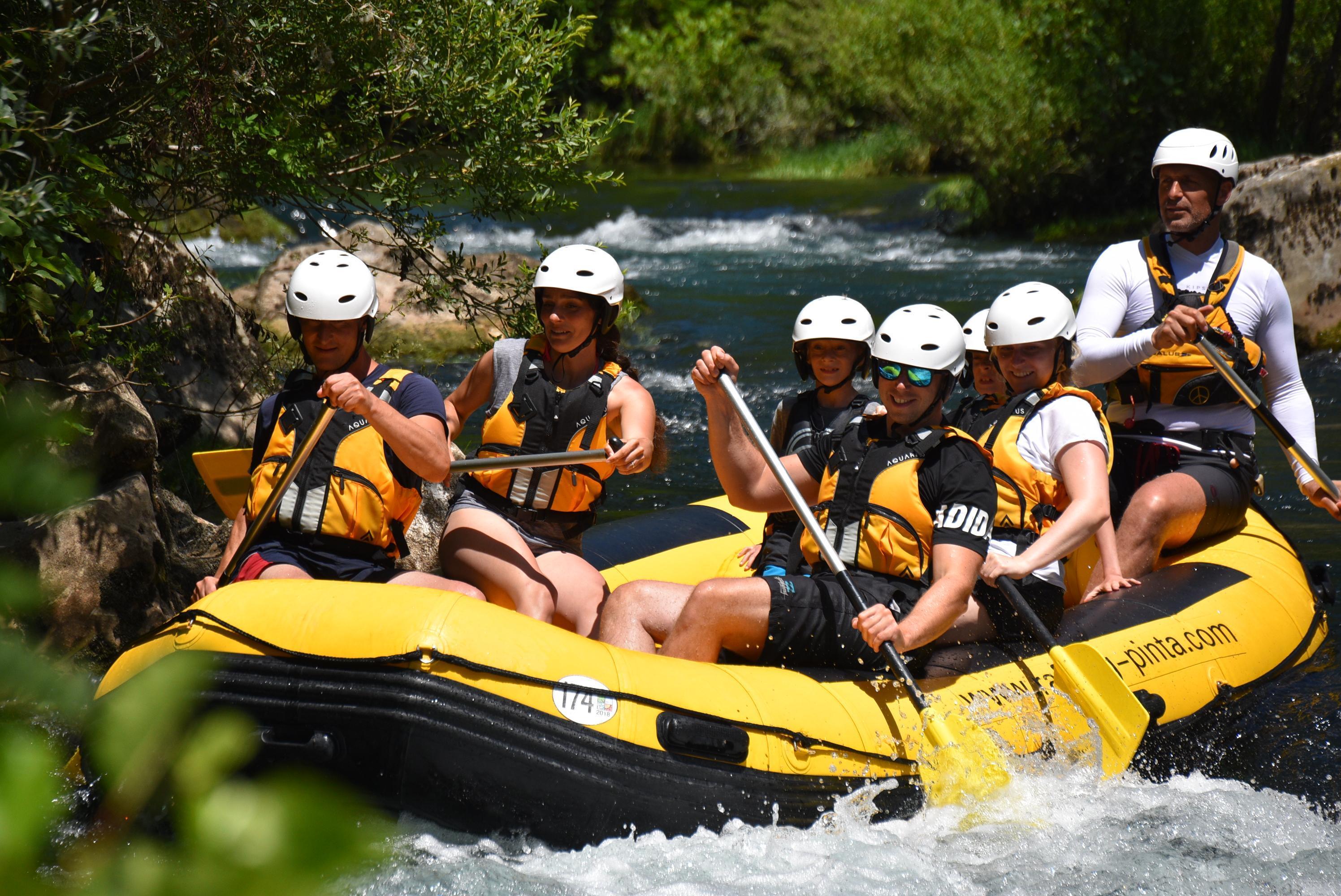Begleitet uns beim Rafting auf der Cetina und erlebet ein spritziges Abenteuer, bei dem Ihr ein privates Boot nur für Euch und Eure Gruppe von bis zu 7 Personen habt! Während Ihr gemeinsam den Fluss entlang paddelt, stärkt Ihr Euren Teamgeist und verbringt eine tolle Zeit mit Eurer ganzen Familie. Auf leichten bis mittelschweren Stromschnellen erkundet Ihr imposante Felskulissen und faszinierende Höhlen. Außerdem genießt Ihr den Blick auf die wunderschöne Flora und Fauna sowie das kristallklare Flusswasser der Cetina.