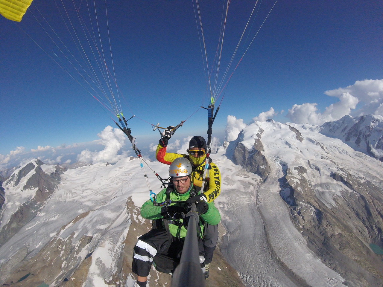 - Complete flight equipment: tandem paraglider, harnesses, helmet