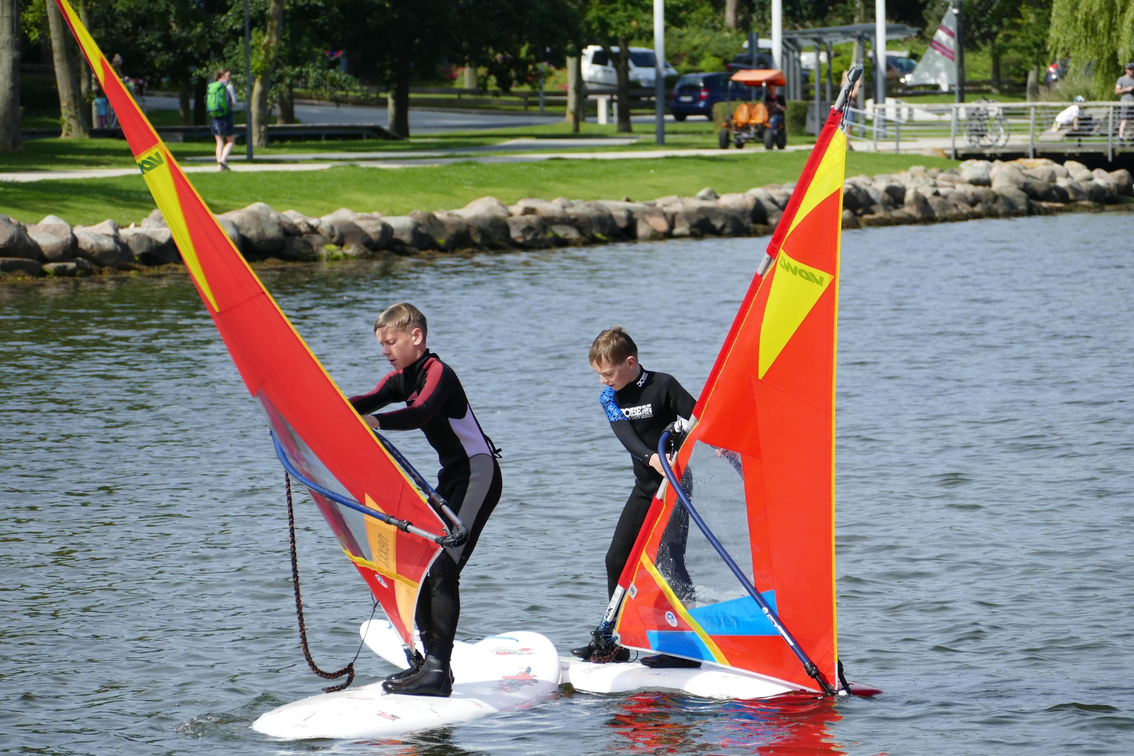 Do you want to get an insight into the world of windsurfing and gain first experiences? Then the windsurf trial lesson is just right for you! The Binnensee offers us the optimal conditions for this. In mostly shallow waters, even the youngest can learn to windsurf without risk.