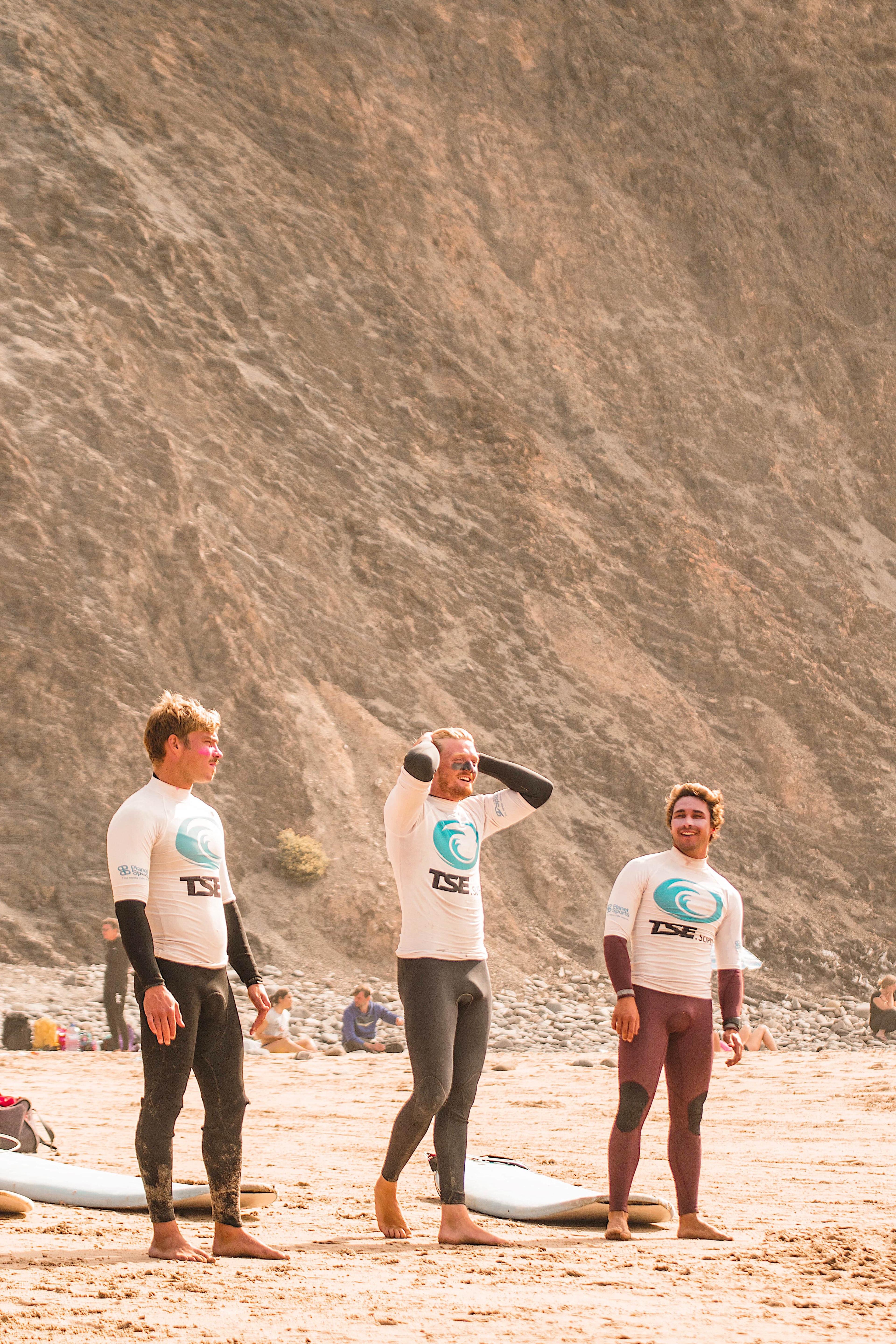 - Theory session on the beach: spot introduction (dangers, rips, currents, paddle out/in)