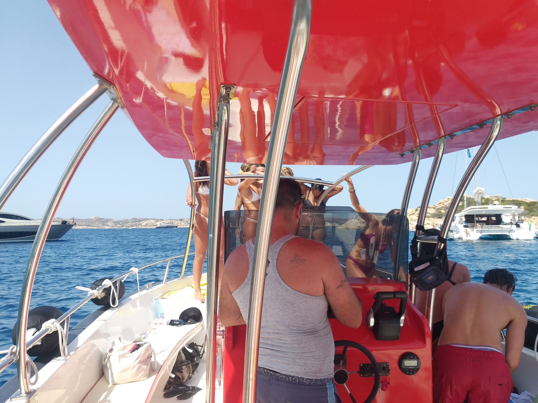 We will welcome you at the port of Palau, and once on board, we will start navigating in a north-easterly direction. Awaiting you will be a breathtaking view of the coast of Santo Stefano Island and the second-largest island in the archipelago, Caprera. We will navigate along it until we reach the paradisiacal Cala Coticcio, also known as Tahiti thanks to its turquoise waters and fine sandy beach. Here we will make a long stop, during which you can use our masks and swimming boards to swim from the boat to the beach. Afterwards, we will make another stop, choosing between Santa Maria, the island of Budelli or the island of Spargi (at Cala Granara or Cala Corsara), depending on weather conditions.