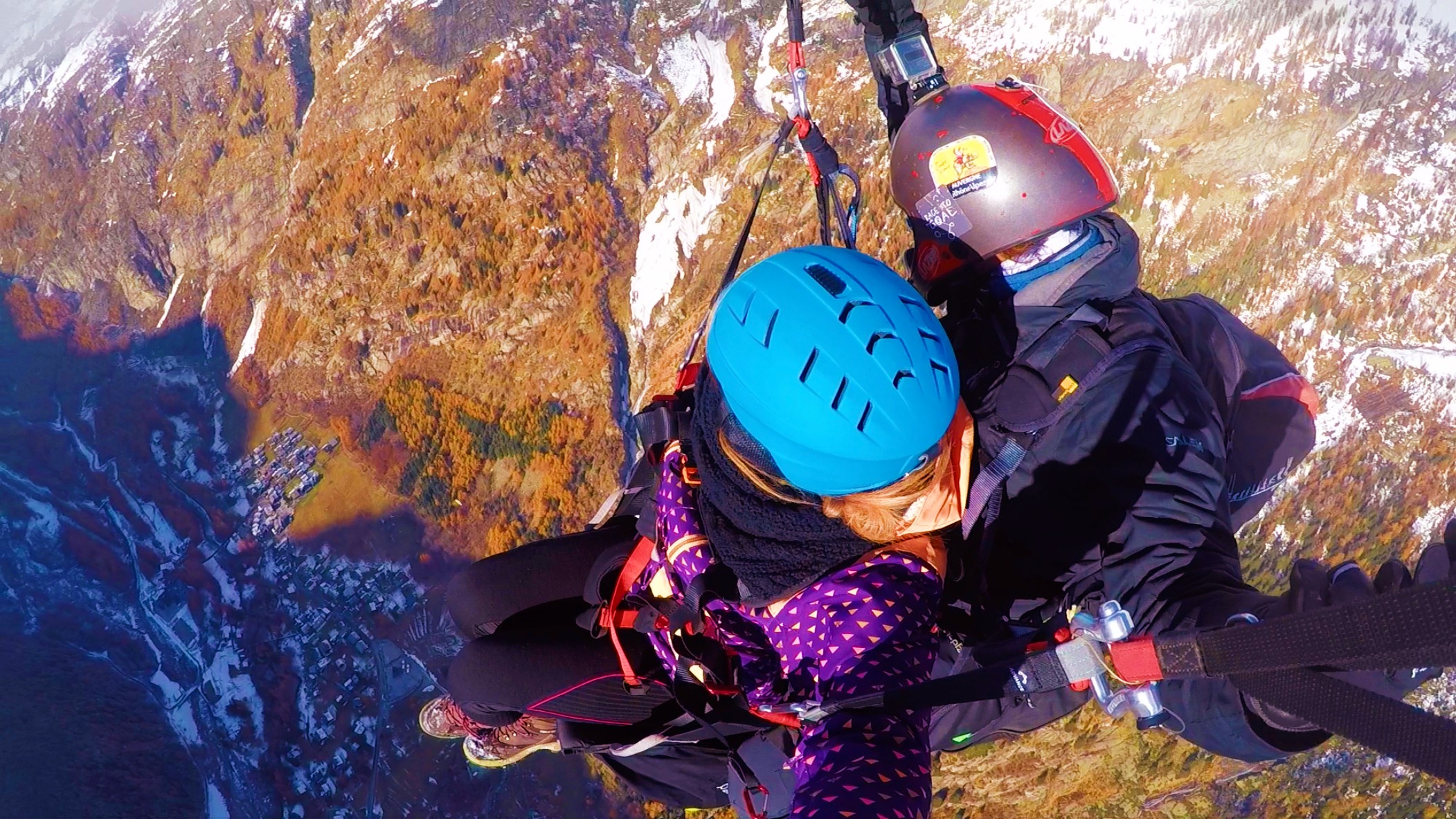 - Complete flight equipment: tandem paraglider, harnesses, helmet
