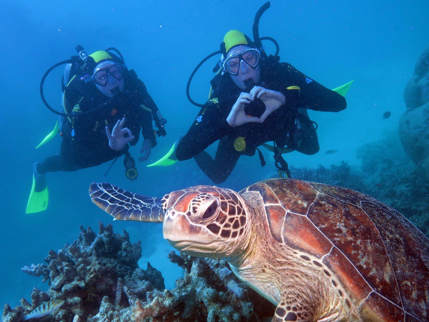 Our qualified team of divers will show you 3 different outer reef sites at Flynn, Pellowe, Milln and/or Thetford Reefs. The locations of diving in the Great Barrier Reef might vary as diving is strongly dependent on weather conditions. Thanks to its shallow warm waters ranging from 22-29° Celsius, diving in the Great Barrier Reef is a perfect spot for the first divers.