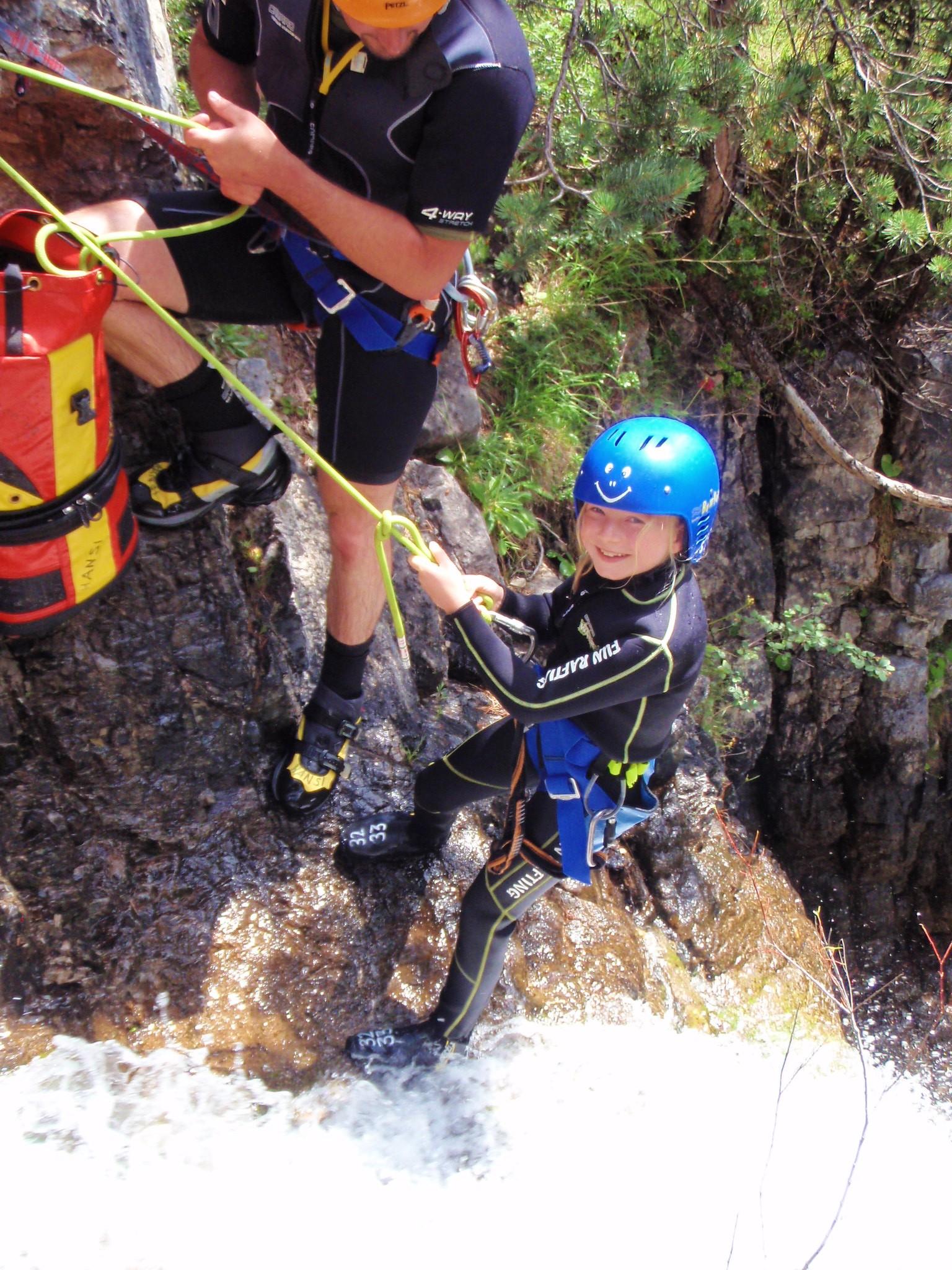 In the Lechtal Valley, even the youngest children can join us to discover the fascination of canyoning. Our family canyoning tour is specially tailored to the needs of children from 6 years and offers fun slides and first rappelling experiences. This guarantees a playful adventure for the little ones but also a lot of fun for their grown-up companions. Get ready for an unforgettable experience with the whole family, which will definitely be the highlight of the summer for your kids.