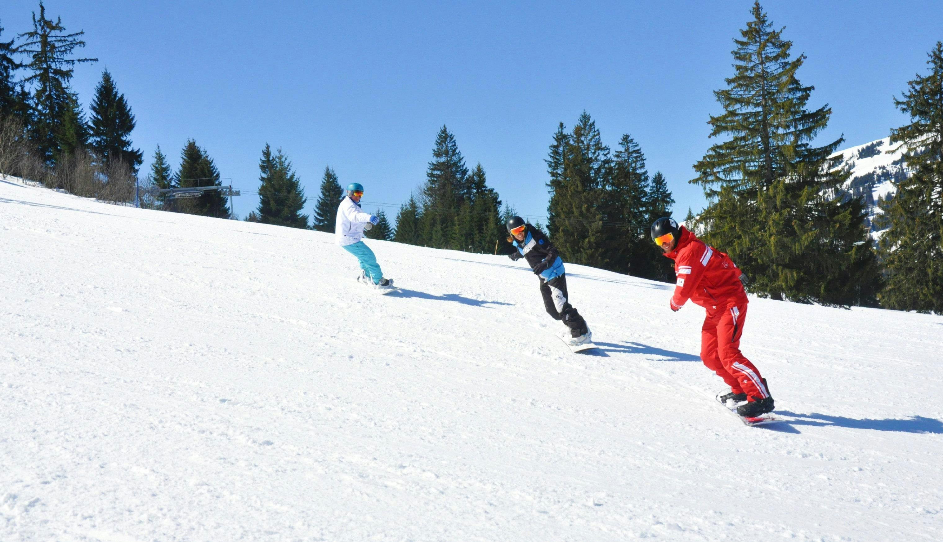 If you're just starting to snowboard, you can learn the basics directly in Château d'Œx. This family resort has a beginner-friendly environment that will allow you to get your feet wet away from the hustle and bustle of the crowds. If you prefer to discover a larger resort, with or without previous snowboarding experience, we offer 2.5-hour or full-day sessions in several areas around Château d'Œx (Gstaad, Rougemont, Saanen, Saanenmöser, Schönried or La Lécherette). We can even meet you directly at your accommodation and take you to the slopes (for day lessons). It is also possible for you to take this lesson with several other participants, as long as your level is equivalent.