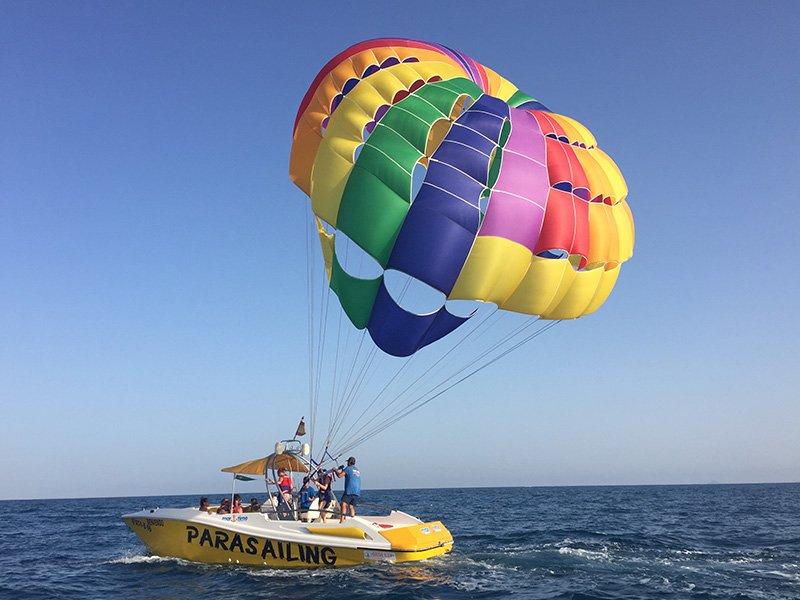Soar through the skies of the Mediterranean Sea with this parasailing experience at Las Mil Palmeras Beach. With this panoramic flight, up to 3 people can enjoy a unique experience flying for 15 minutes. Aboard our boat, we take you out to the open sea, where we will slowly lift you up into the sky. For a total of 1 hour, you will enjoy a unique and memorable experience in the sea of the Levante coast.