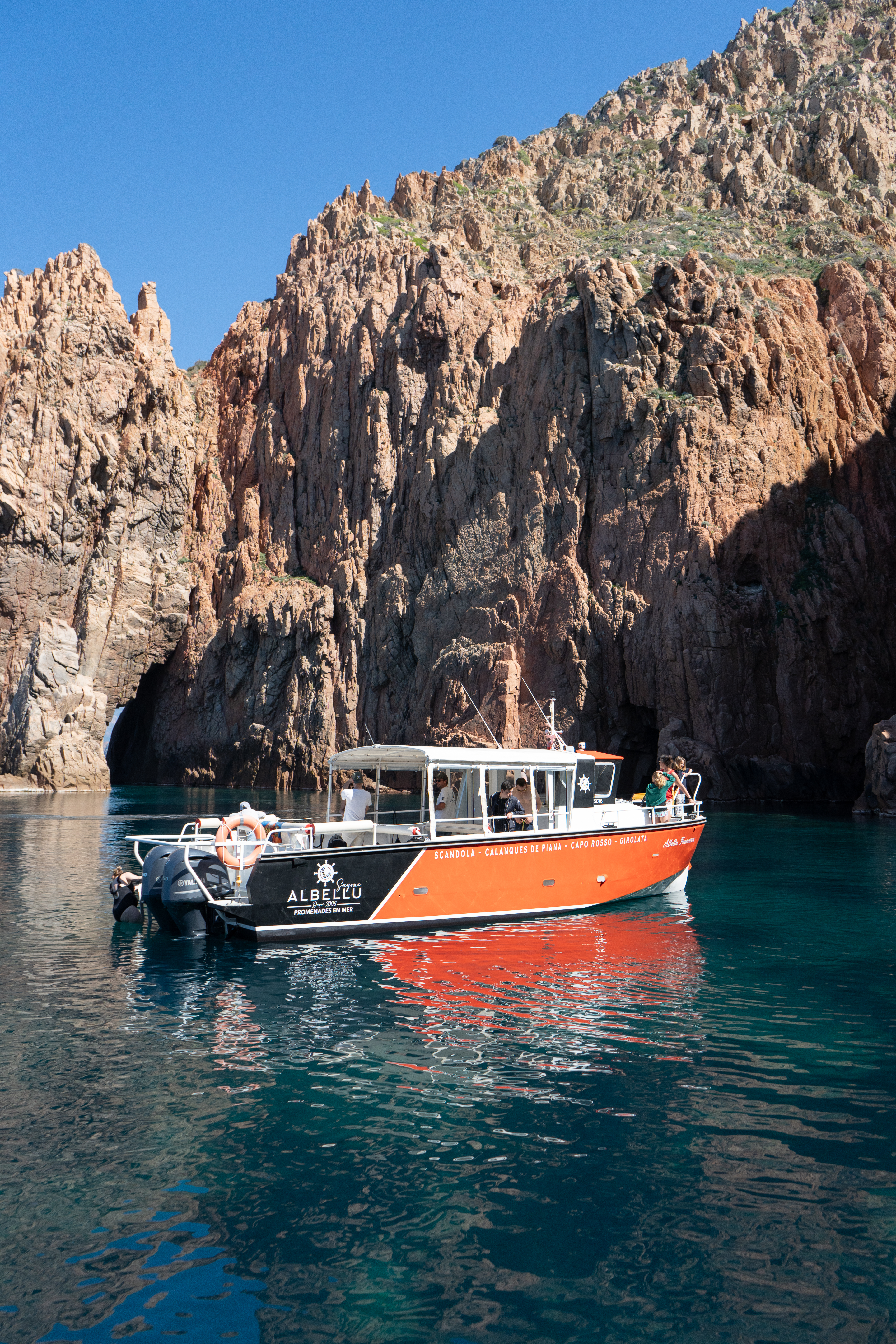 Embark on a memorable journey with our boat trip to Scandola and the Calanques of Piana! From the port of Sagone, we'll head north to the Scandola nature reserve, where you'll be able to observe a rich fauna and flora, including endangered species such as the osprey. Then we will go to Girolata, where we will stop for 30 minutes so that you can visit the fishermen village.