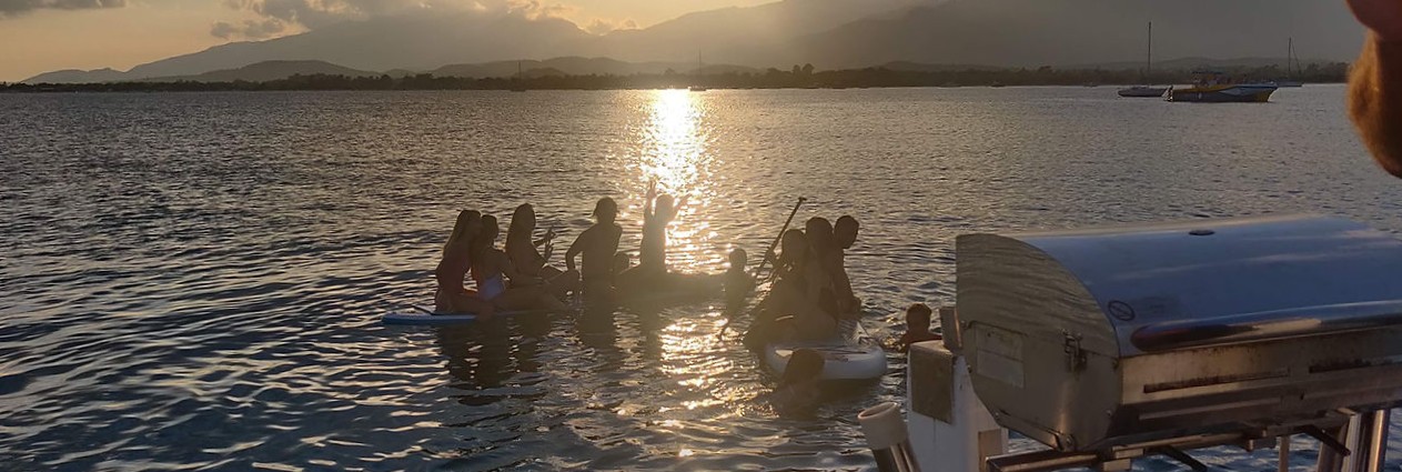 Our sunset boat trip around the Gulf of Porto-Vecchio will allow you to discover the coastline as never seen before! Our boat is waiting for you in the picturesque village of Porto-Vecchio and then, after 1 hour of navigating in the bay, we will drop anchor in a wild cove. During this stop, you can relax on the deck, do a more sportive activity such as stand up paddling, or go swimming or snorkeling.