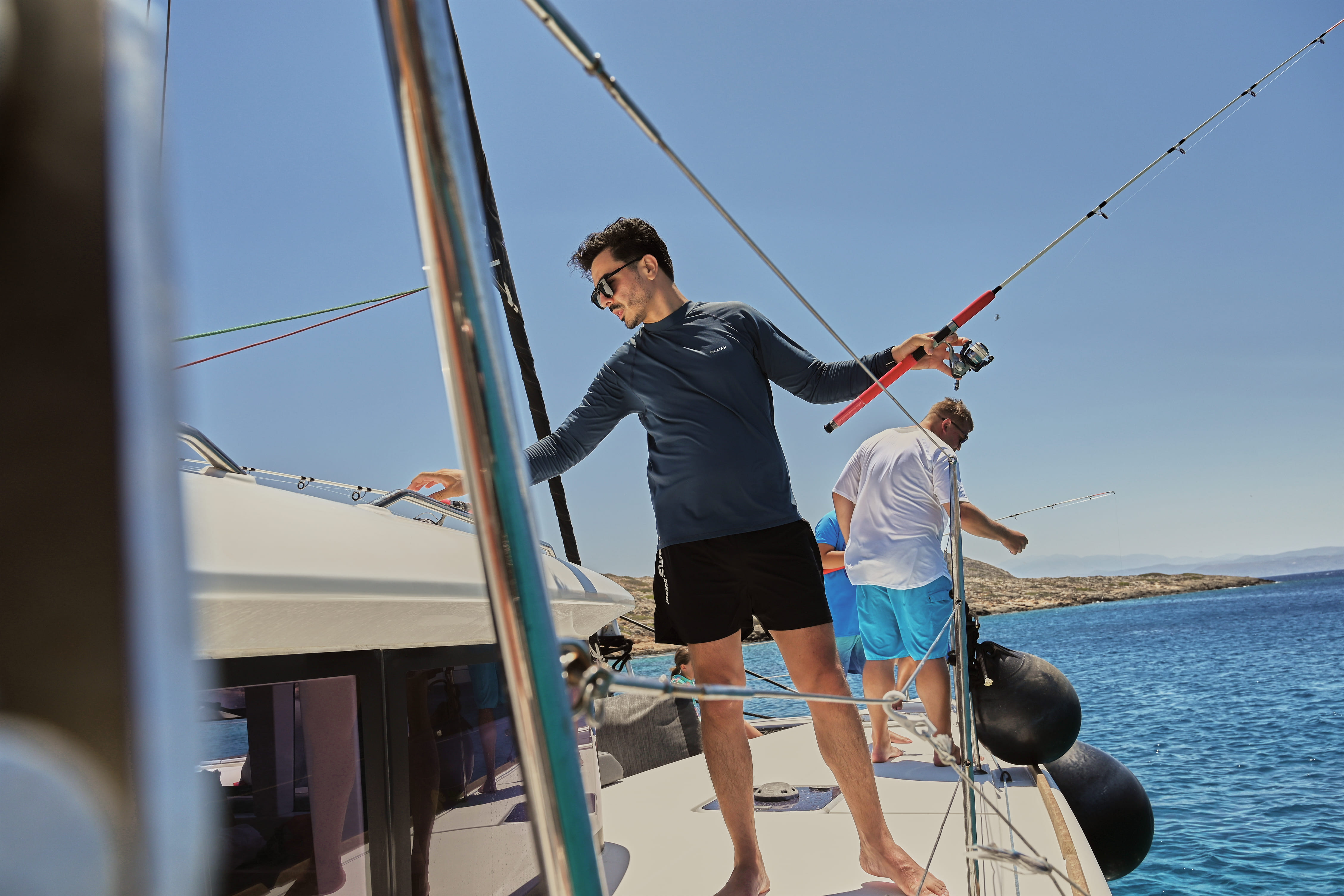 Once we drop anchor off to Dia island, you can spend your time as you please. Stay on board our luxurious catamaran and enjoy the warm sun, or snorkel with the equipment we provide and discover the underwater world. If you prefer to keep your head above water, you can grab one of our paddleboards and paddle closer to the island or make use of the fishing kit on board. For our little visitors, we have inflatable swimming animals and a game box on board!