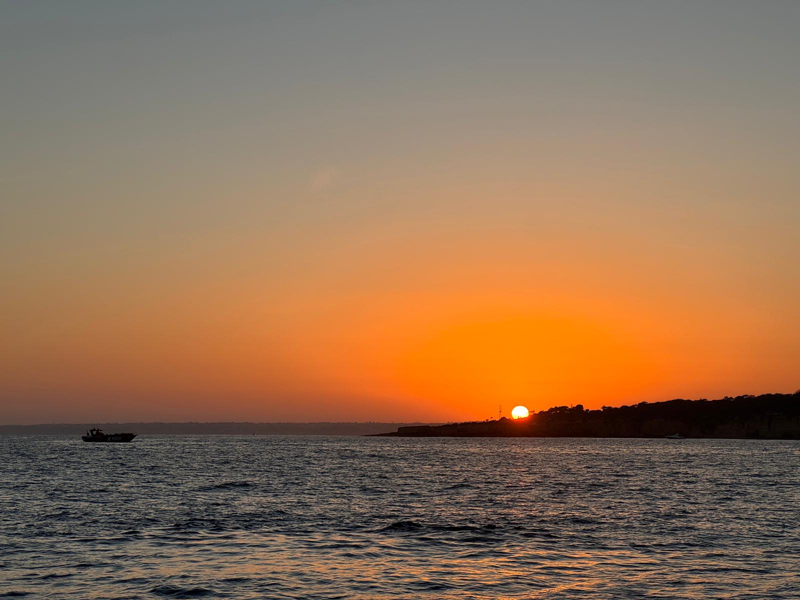 Discover the Benagil Cave during our sunset boat trip from Albufeira. During this trip you can explore the Benagil seacave while the sun is setting across the Atlantic Ocean. From the Marina of Albufeira, this 1.5 hour boat excursion will take you on a relaxing cruise along the coastline to explore this famous cave, where the contrast of colours in the sky and impressive structure inside the cave will create a beautiful scenery.