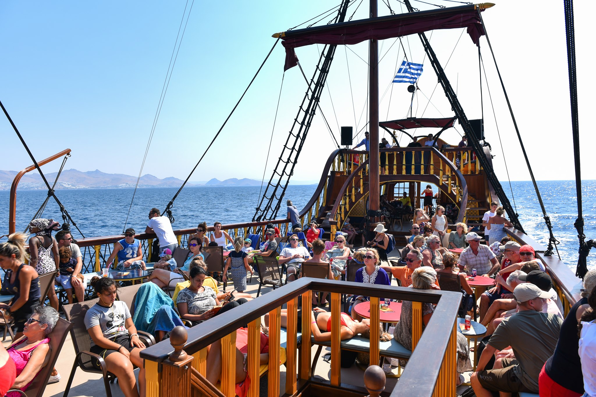 We meet at the Kos Marina 30 minutes before the departure time. If you come by car, there are free parking spaces nearby. At the end of our boat trip, we return to the marina around 5:30 pm. Characteristics of the boat
