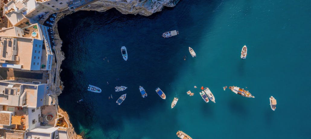 Departure is from the port of Polignano a Mare, and it will not take long before a sequence of inlets and beaches, including the gorgeous Cala Paura, will alternate along the way, before our arrival at the caves of Polignano a Mare. Our experienced skipper will determine the most appropriate itinerary depending on weather and sea conditions, but the caves we will undoubtedly try to visit are Grotta dei Colombi, Grotta degli Innamorati, Grotta delle Monache and Grotta delle Rondinelle. The size and characteristics of our boat, moreover, will allow us to visit the inside of some of these caves as well.