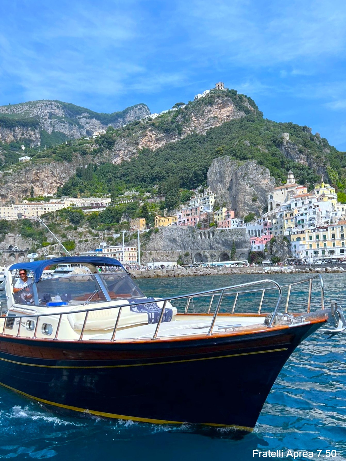 We meet at our office at the dock of Positano 15 minutesbefore the departure. The meeting point can be reached by car and there is a pay car park nearby (Parcheggio Mandara).Characteristics of the boatsFratelli Aprea 36/Fratelli Aprea 32