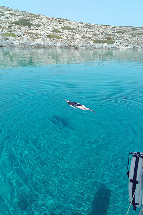 Experience some unforgettable hours on the sea with our sailing trip to Dia Island with lunch. Relax on board of our comfortable sailboat, swim in crystal clear water, discover the rich sea life of Crete while snorkeling or try fishing. For lunch, our team will serve you a delicious Greek menu, and of course, one thing not to be missed is the olive oil from our family production.