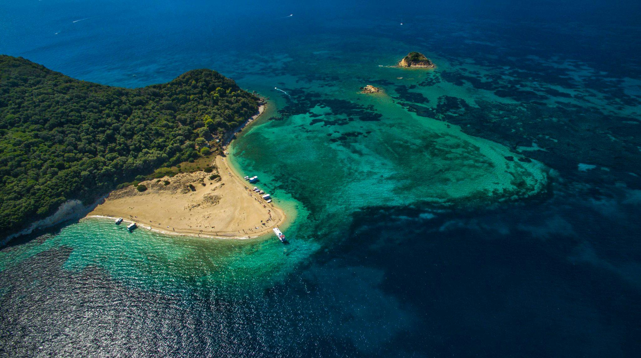 Our journey will start in the port of Agios Sostis from where we will depart south-west to the popular Keri Caves. Here we will stay for around 20 minutes so that you can enjoy a swim in the crystal clear turquoise waters of the cave complex. The next stop is the Marathonisi Island. The turtle shaped island is actually also the Caretta-Caretta's turtle main nesting spot on Zakynthos and on top of all you can enjoy its beautiful sandy beaches. We will stay here for about 50 minutes.