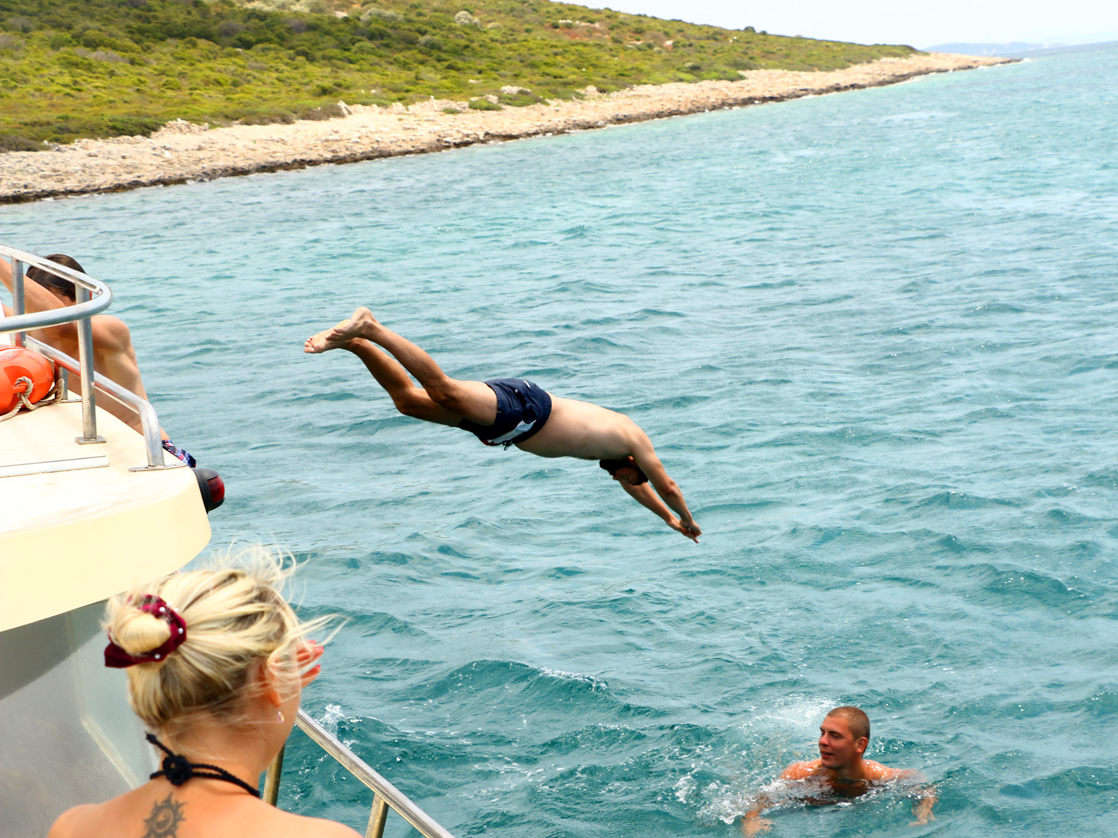 At our boat, in the harbour of Murter