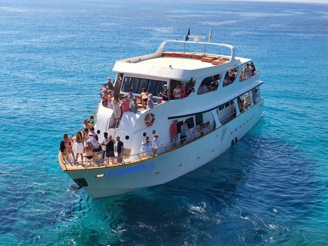 Afterwards, we will head to the Blue Lagoon, where you will once again have the opportunity to relish the turquoise water. Then, together, we will enjoy the breathtaking atmosphere of the sunset and dance into the evening to the unrivalled sounds of 80s and 90s hits. After about 3.5 hours, we will return to Protaras Pier where you can explore the exciting nightlife of Cyprus!