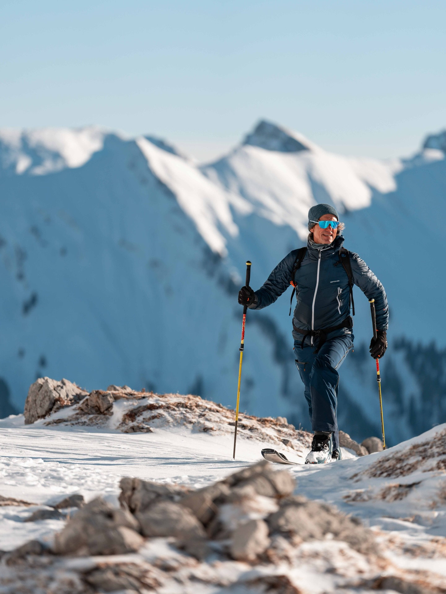 - Blue learning level: Transition from Nordic cruising to a more dynamic and sporty style using simple skiing techniques.