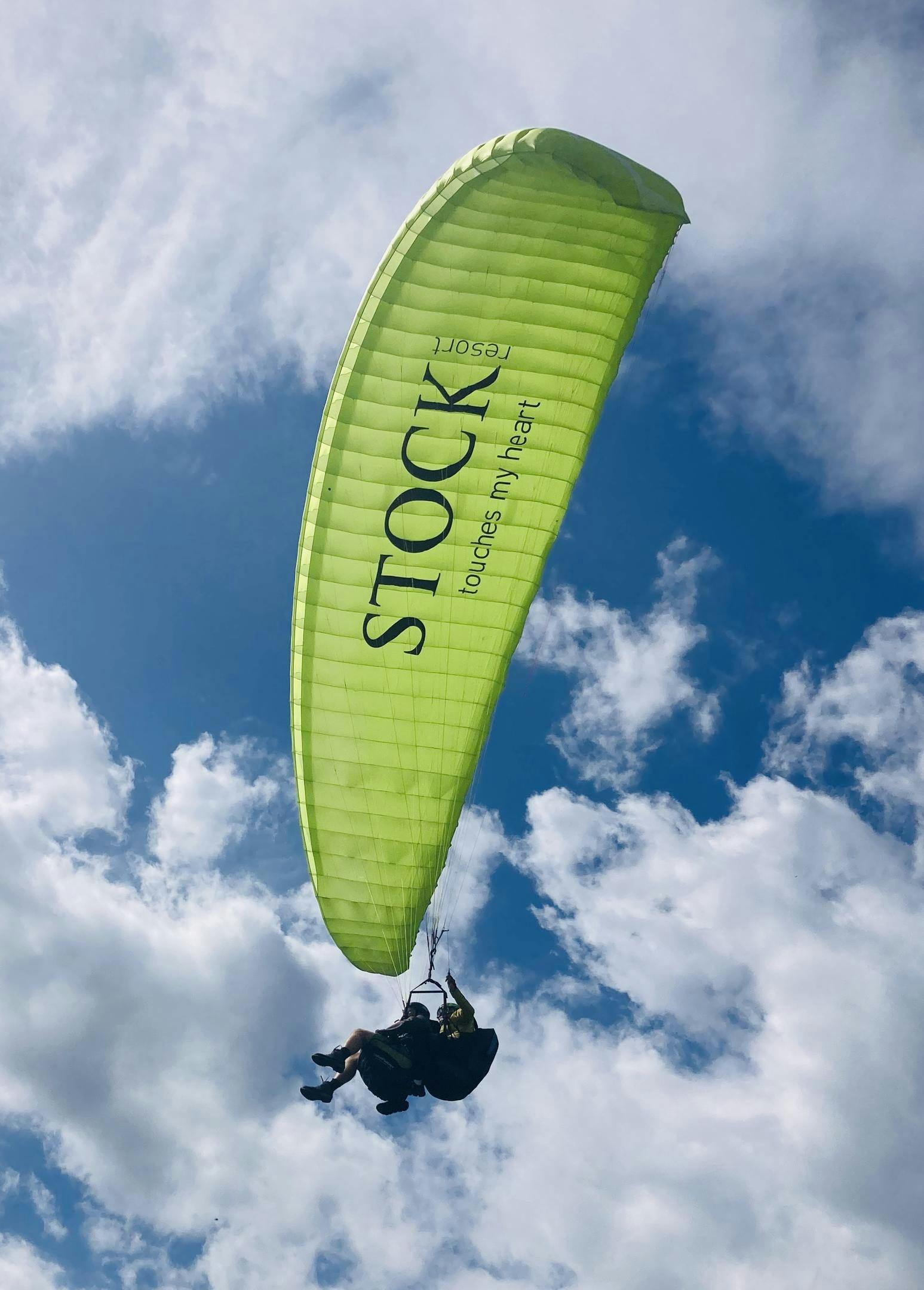- Complete flight equipment: tandem paraglider, harnesses, helmet