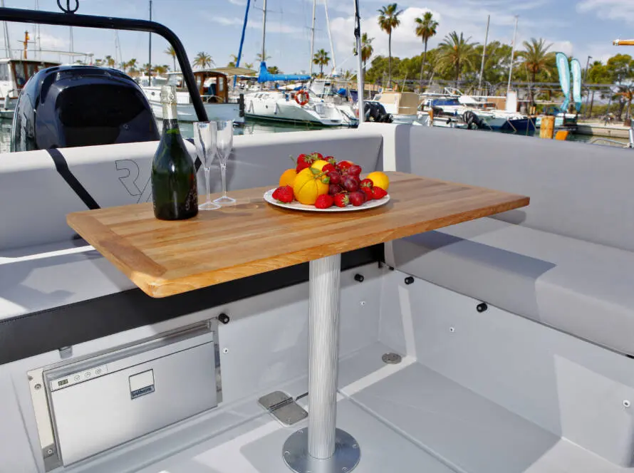 Join our boat rental in Alcúdia in total style aboard our high-class model. With space for up to 8 passengers and powered by an impressive 350 HP engine, you'll have the freedom to explore the stunning bays around Alcúdia and Pollença Bay like never before. Departing from the picturesque port of Alcúdia, you have the option to cruise with a licensed skipper or take command yourself if you hold a license.