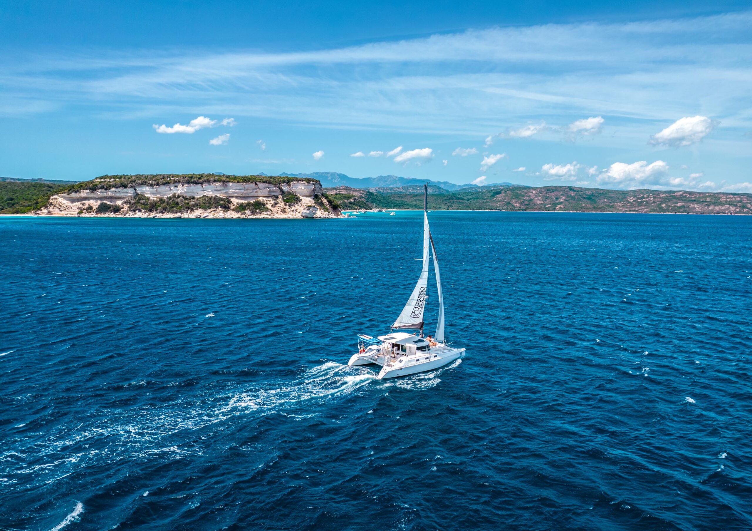 Our catamaran trip to the Bouches de Bonifacio nature reserve invites you to spend a memorable half-day discovering the idyllic landscapes of southern Corsica. Departing from Maora Beach, 15 minutes from Bonifacio, our Trigwen catamaran will take you close to the region's most beautiful beaches for a few hours of timeless relaxation.