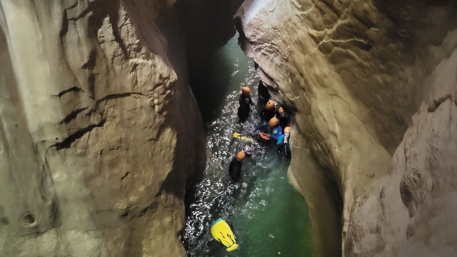 - Full canyoning equipment (wetsuit and neoprene socks, helmet, harness)