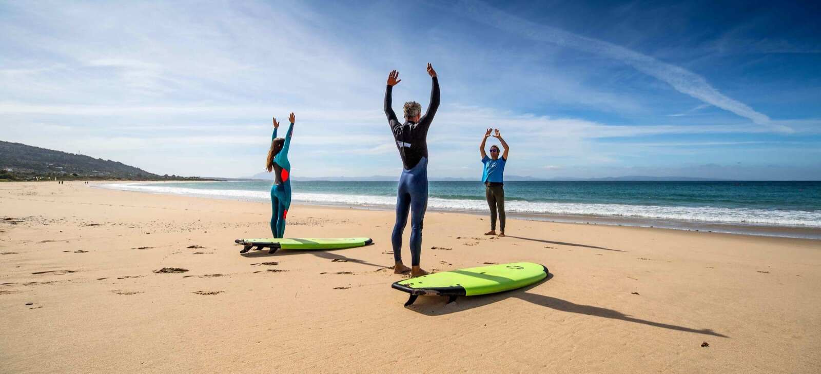 Our highly experienced and certified instructors will introduce you to this exhilarating sport. The classes lastapproximately two hours and include everything you need: wetsuit and board. If you're ready to visit the stunning beaches of Tarifa and fall in love with the surfing lifestyle, take the plunge and get ready to surf some waves with us!Meeting and Preparation