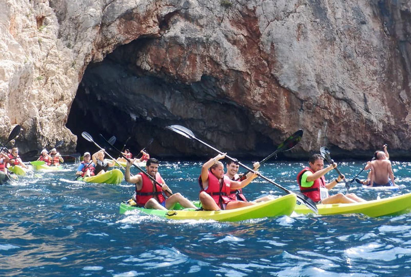 Midway through the tour, we will stop at the Cala Moraig viewpoint to enjoy a delicious picnic with typical Spanish food while contemplating the impressive view of the coast and the Cap D’Or tower. We will continue our tour towards the Granadella forest park, where a descent will take us to the picturesque Cala Granadella. Here, you can take a dip or go on a second kayak excursion, exploring Cala en Caló and the Cueva del Llop Marí if we didn't do the kayak tour in Moraig.