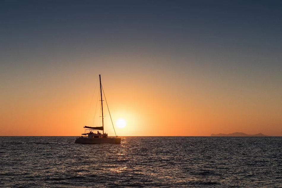 Enjoy our full day private catamaran trip along Santorini including sunset. Your journey begins as you step aboard our elegant catamaran, designed to provide a luxurious and comfortable experience. The catamaran features spacious decks, shaded areas, and a well-equipped bar, ensuring you have everything you need for a delightful day on the water.