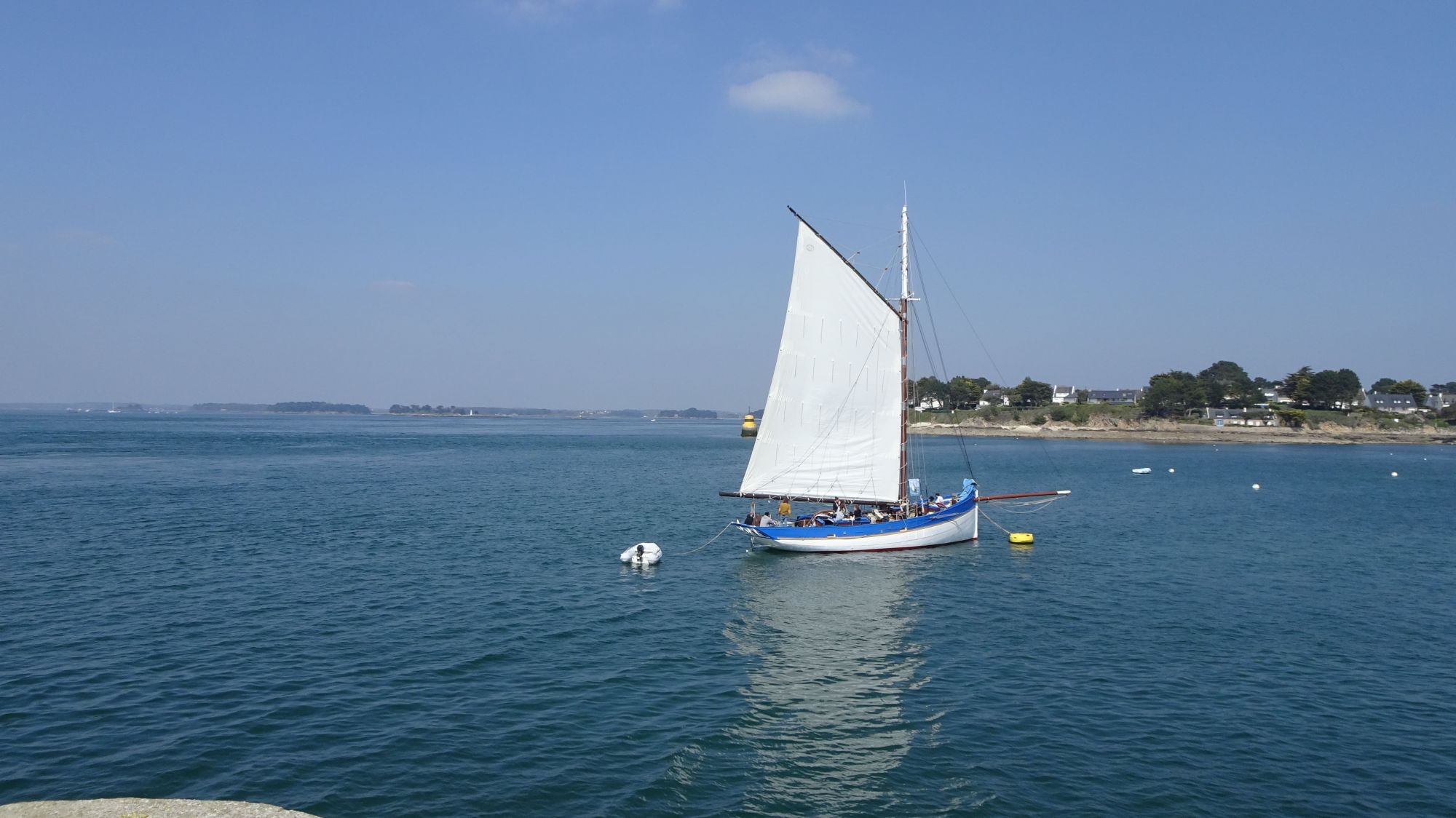 With our colourful sails, we will set sail for Quiberon Bay. During the crossing, you will have the chance to admire the Morbihan coastline and the treasures of the gulf. If you wish, you can also take part in the manoeuvres alongside Alan and Alan, the captain and first mate. Both will be delighted to answer any questions you may have, whether about sailing, their passion for old sailing ships or, of course, the local area. A snack will be offered in the morning.