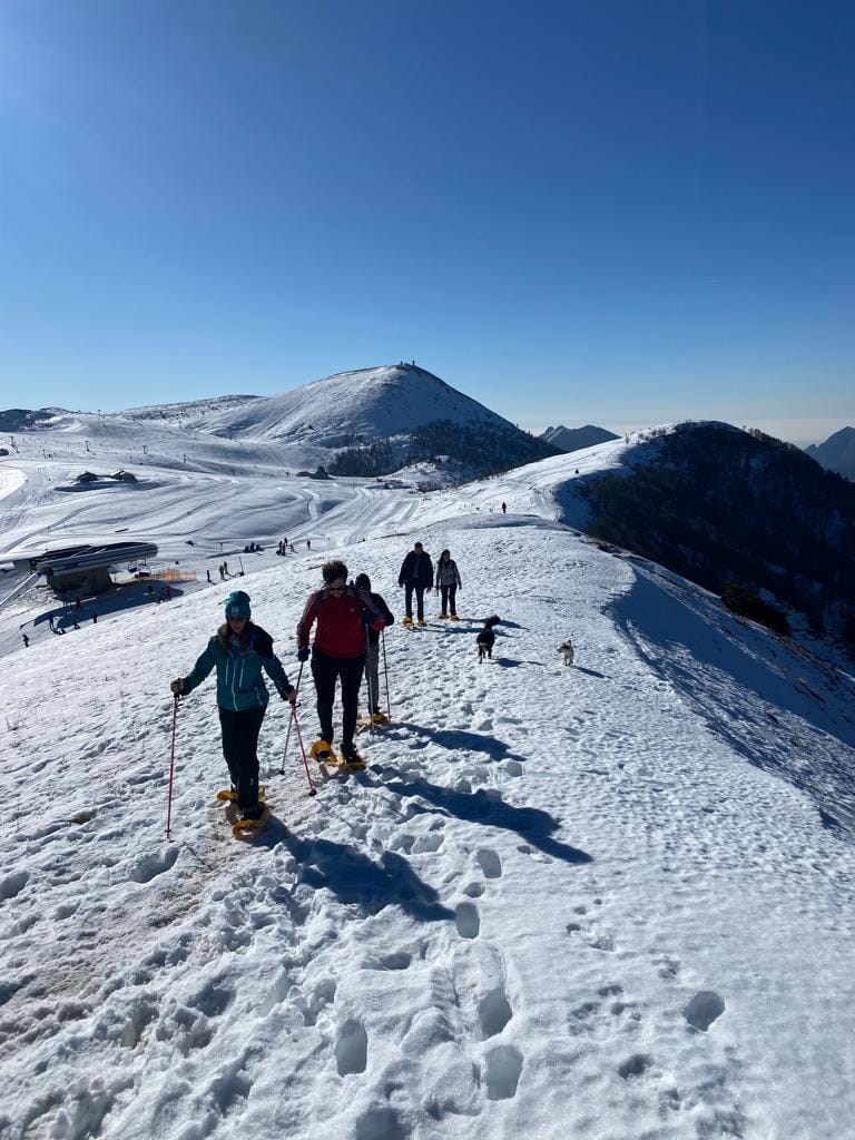 Join our snowshoeing tour in Piani di Bobbio and immerse yourself in the stunning beauty of nature, with snow-covered trees and breathtaking views. This tour is suitable for all skill levels, including beginners, and is open to participants aged 10 and older. Accompanied by our experienced instructor, you will traverse through the serene winter landscape, discovering hidden paths and enjoying the tranquillity that Piani di Bobbio offers. With gentle slopes and expansive terrains, this region is a fantastic choice for snowshoeing, offering a peaceful escape into nature.